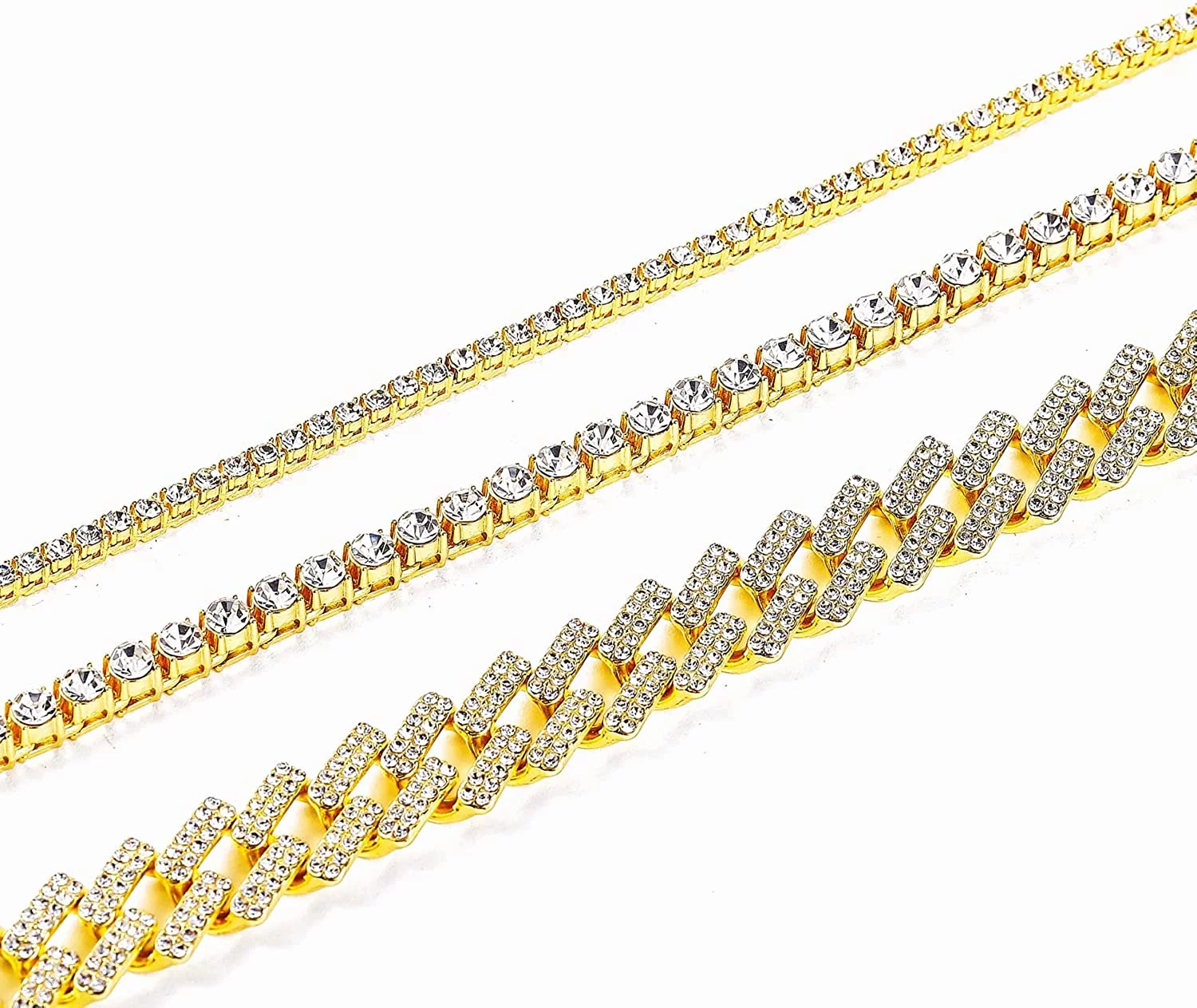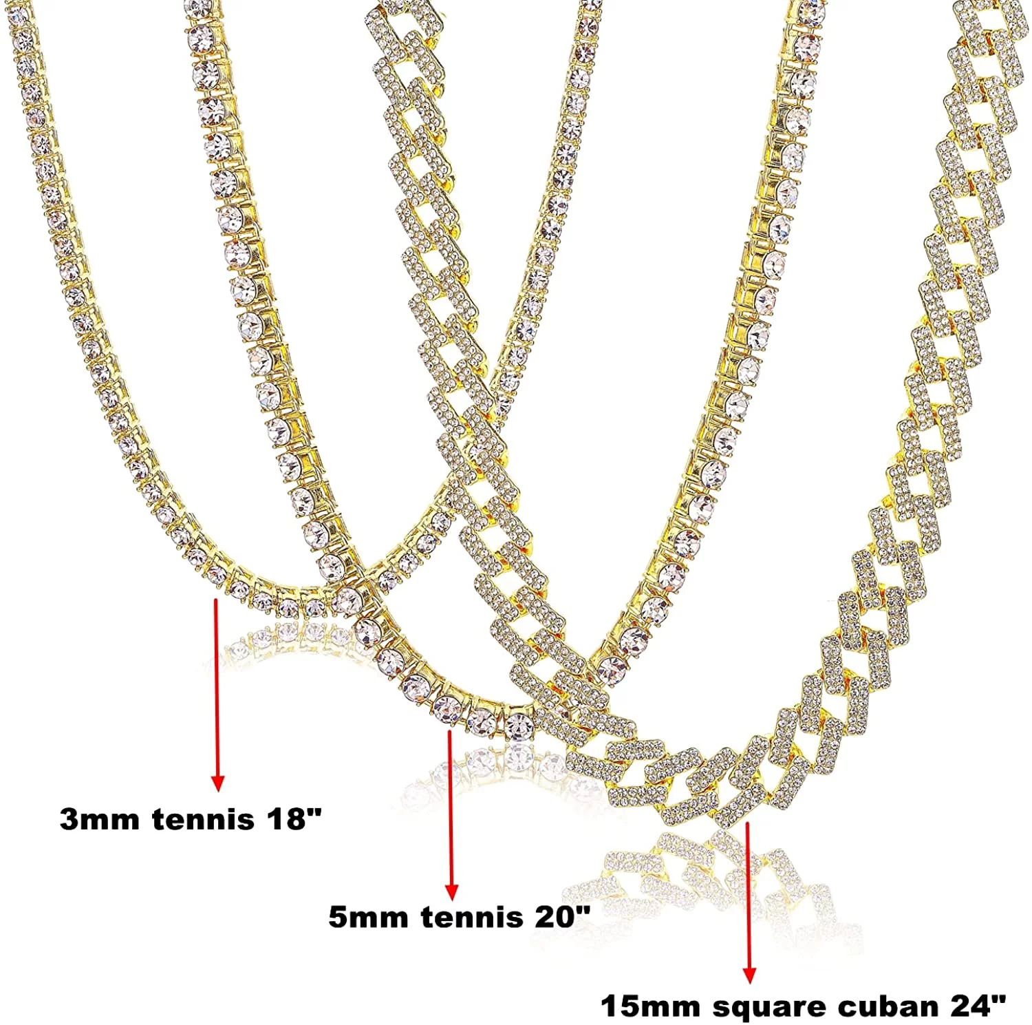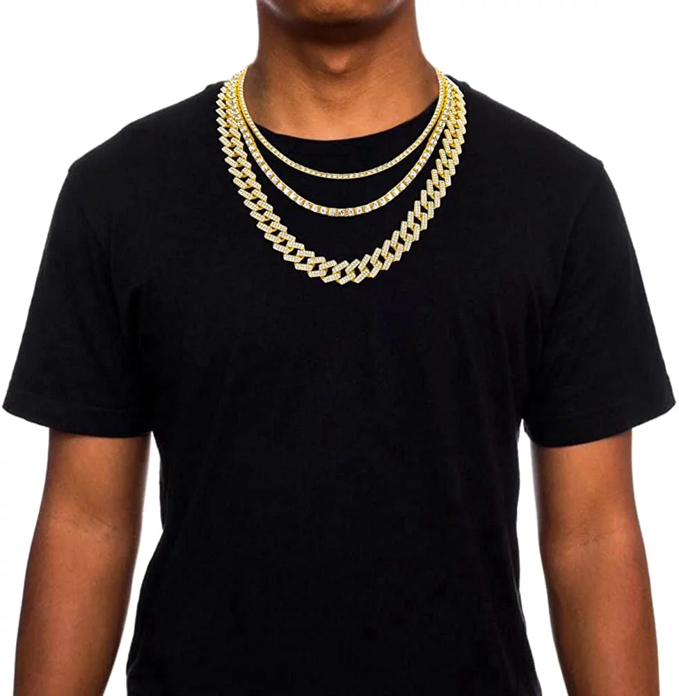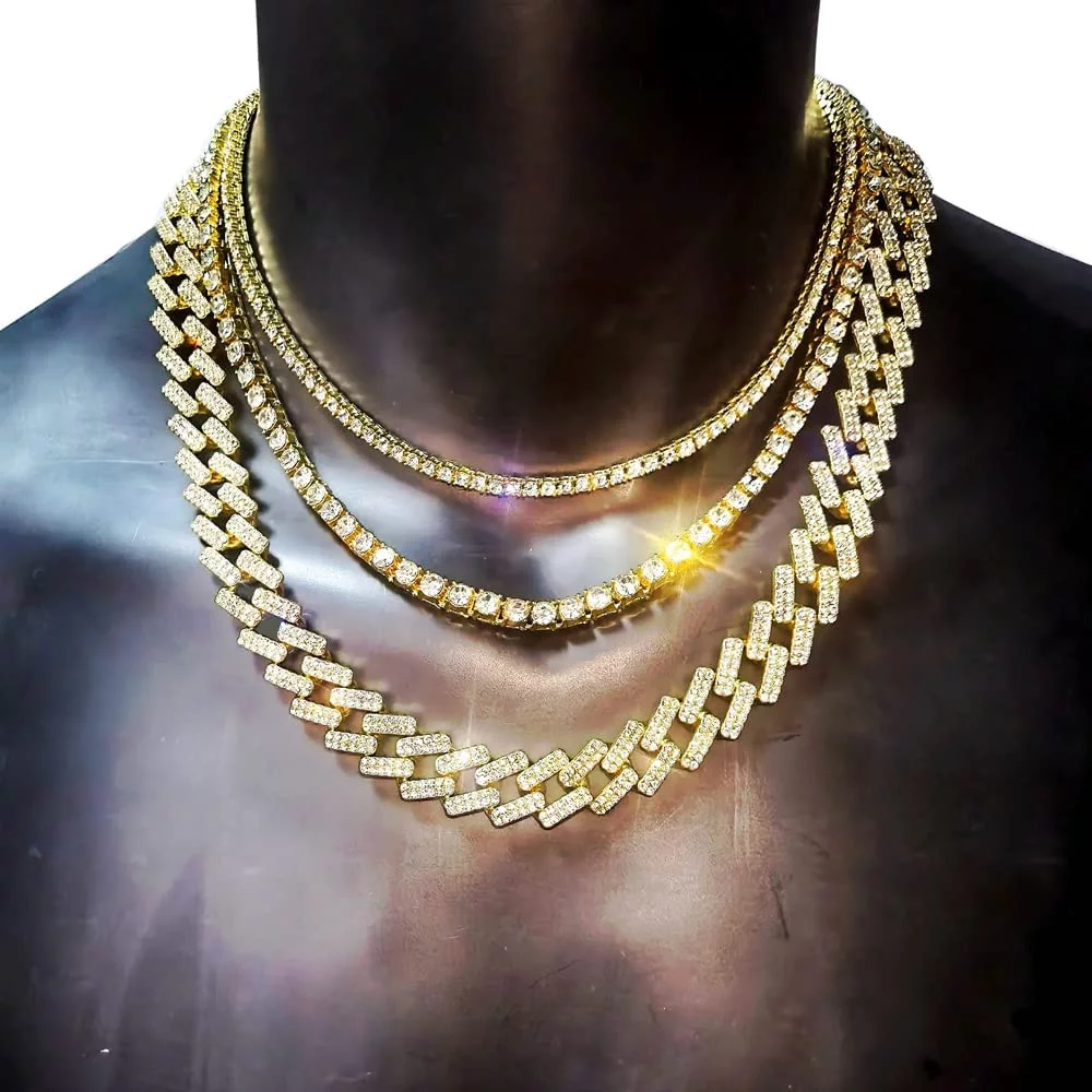 HH Bling Empire Gold Tennis and Cuban Link Chain for Men,Iced Out Mens Diamond Cuban Chain Necklace Sets,Hip Hop Rapper Jewelry Chains,3 Pcs 18/20/24 Inch (Set C-Silver) - Curated Treasures Market