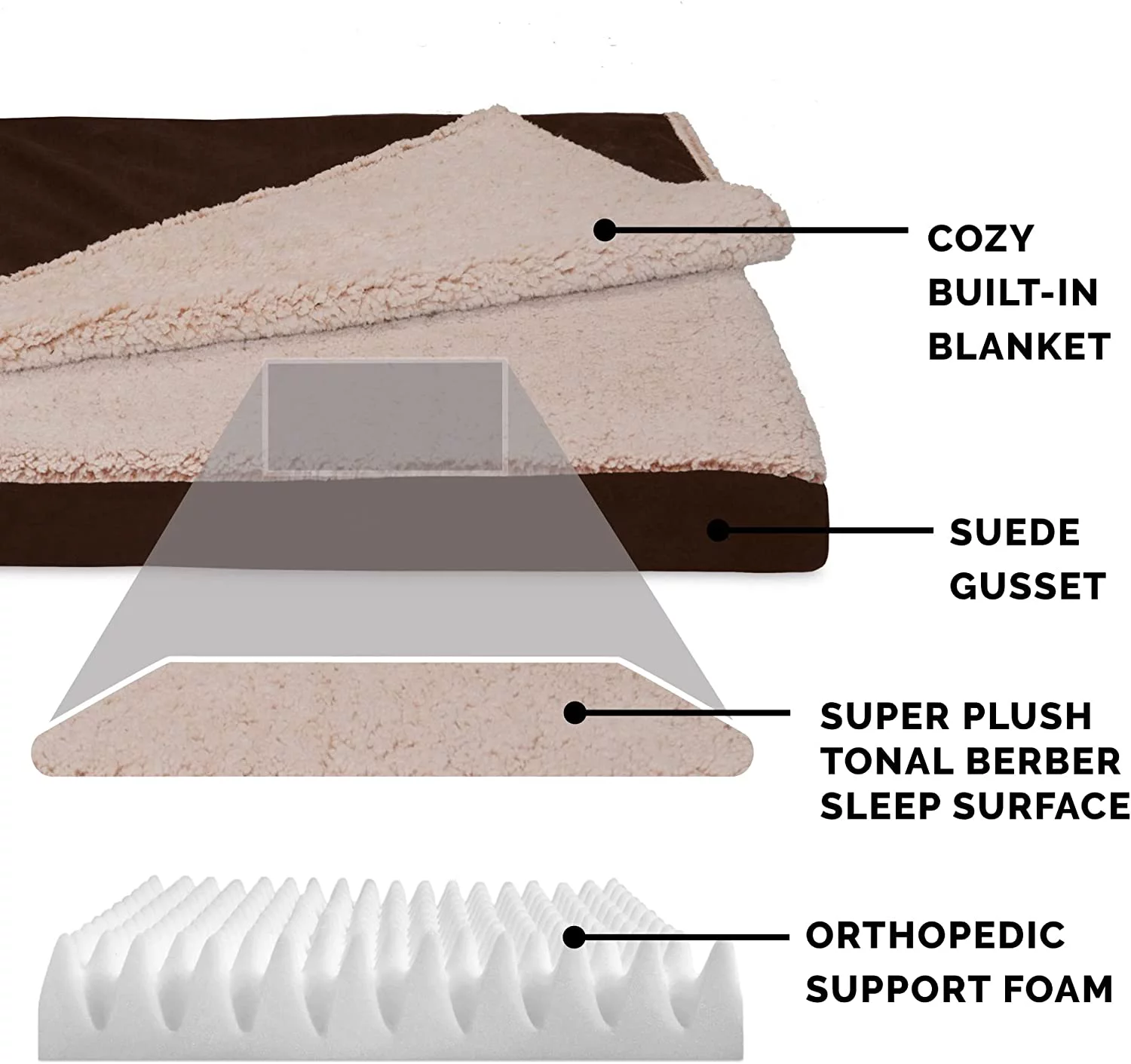 FurHaven Pet Products Berber & Suede Blanket-Top Orthopedic Deluxe Mat Pet Bed for Dogs & Cats - Espresso, Medium - Curated Treasures Market
