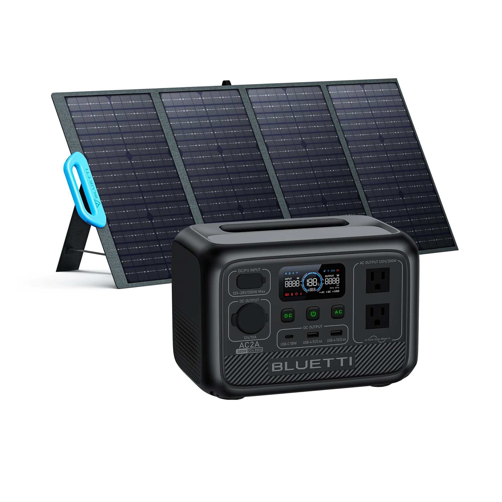 BLUETTI AC2A Portable Solar Generator and 120W PV120 Solar Panel, 204.8Wh LiFePO4 Power Station With 300W Rated Power (600W Lifting Power) for Camping, Hiking, Home, 0-80% Recharge in 45 Mins - Curated Treasures Market