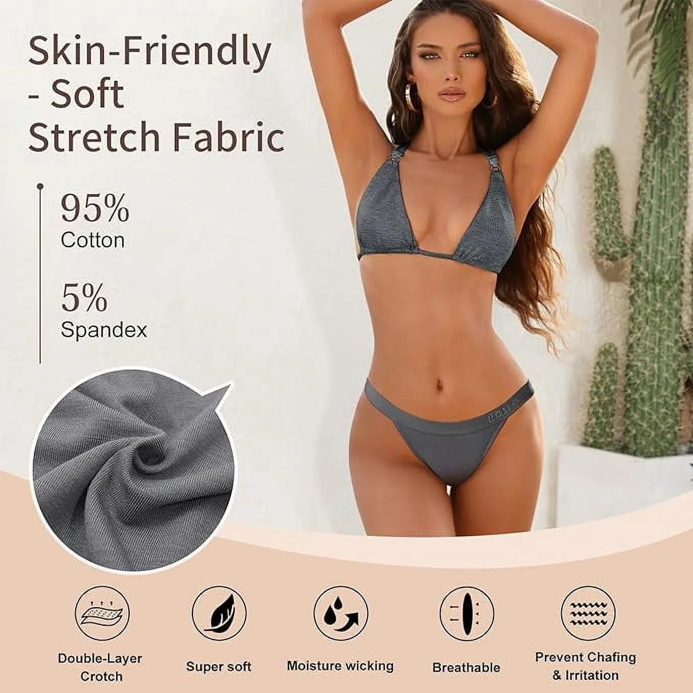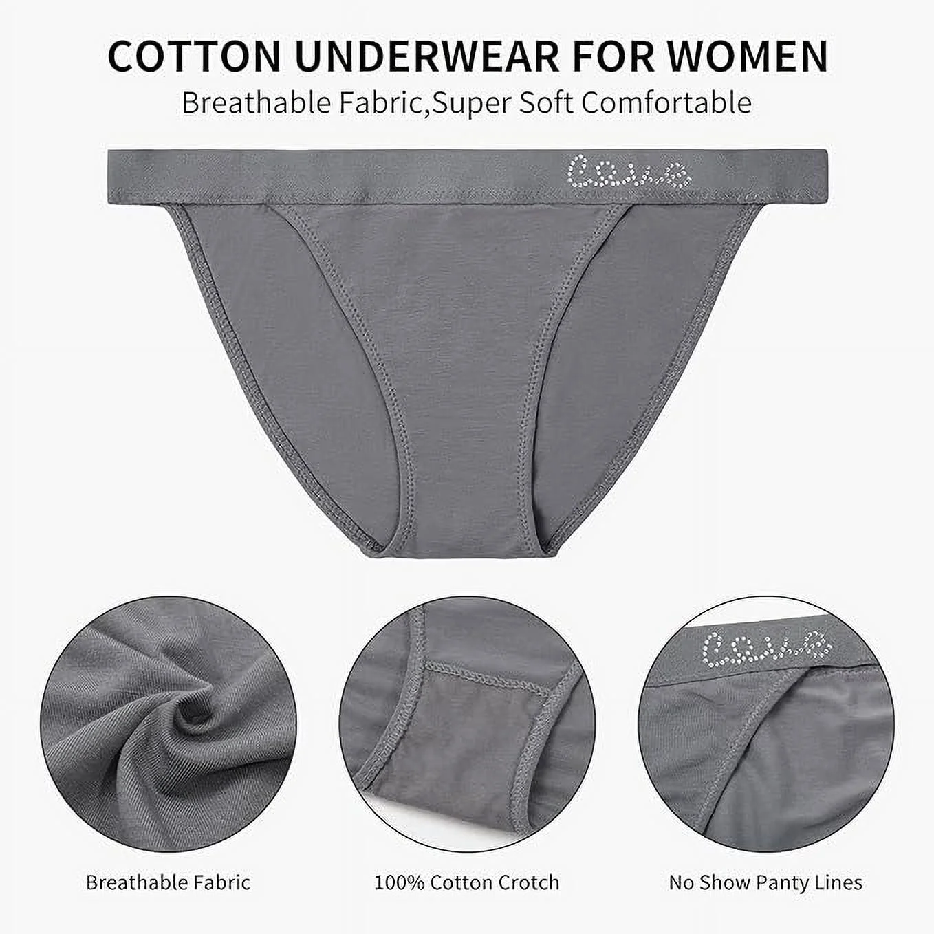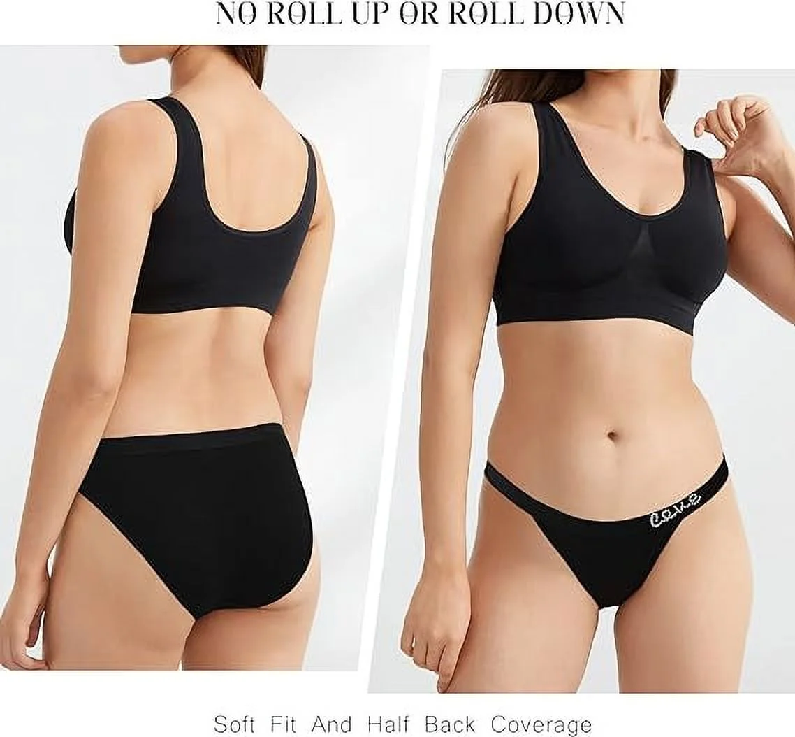 LEVAO Cotton Underwear Women Cheeky Panties Rhinestone Logo Low Rise String Bikini Panties 6 Pack S-XL - Curated Treasures Market