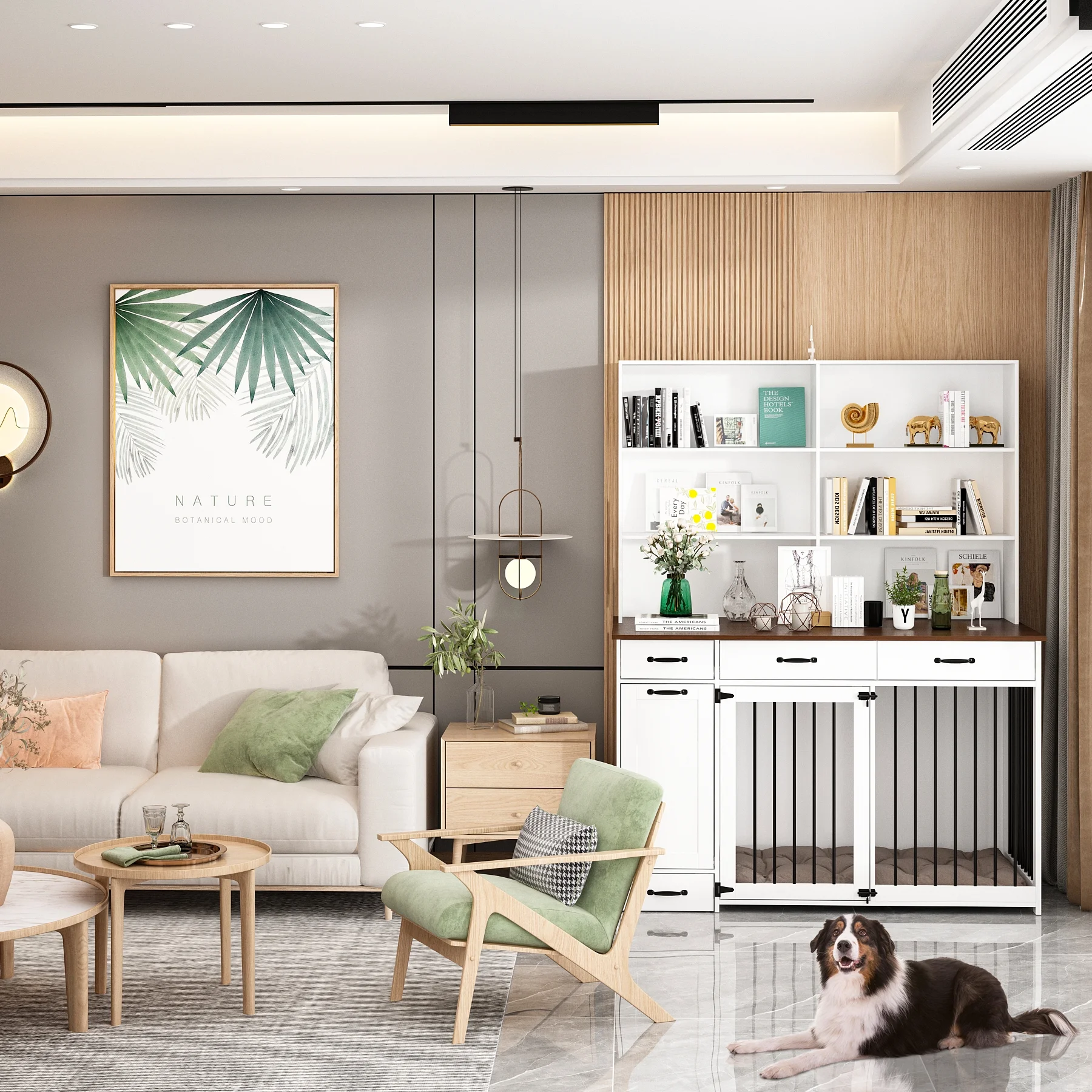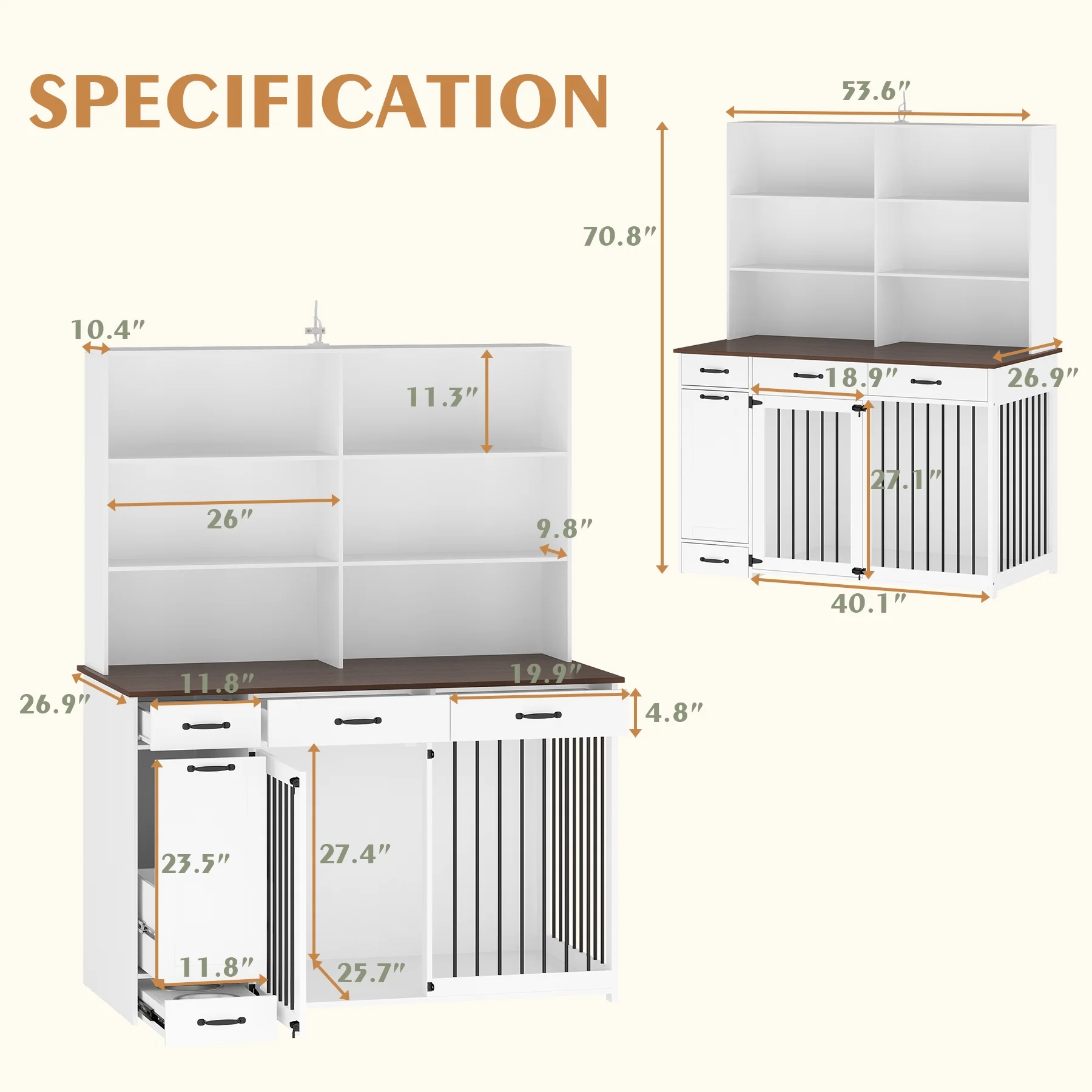 NARTRU Dog Crate Furniture with Storage, Wooden Dog Crate Cabinet with Dog Bowls, Dog Food Storage, Drawers and Shelves for Small, Medium or Large dog, White - Curated Treasures Market