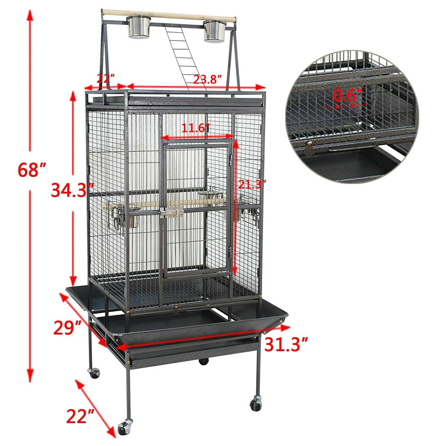 ZENSTYLE 68"H Large Spacious Bird Cage with Rolling Stand Metal Frame - Curated Treasures Market