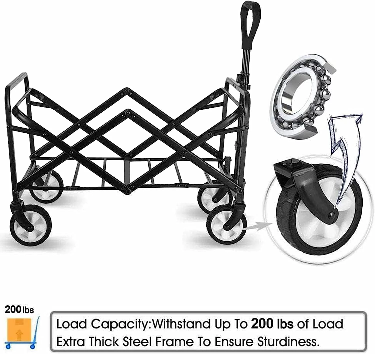 Collapsible Foldable Wagon, Beach Cart Large Capacity, Heavy Duty Folding Wagon Portable, Collapsible Wagon for Sports, Shopping, Camping (Black ) - Curated Treasures Market