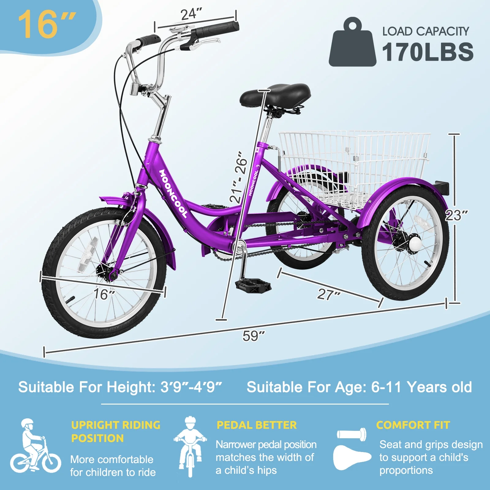 NAIZEA 16" Tricycle for Kid, Single Speed Three Wheeled Tricycle Bike for 3'9" to 4'9" Tall Boys and Girls - Curated Treasures Market