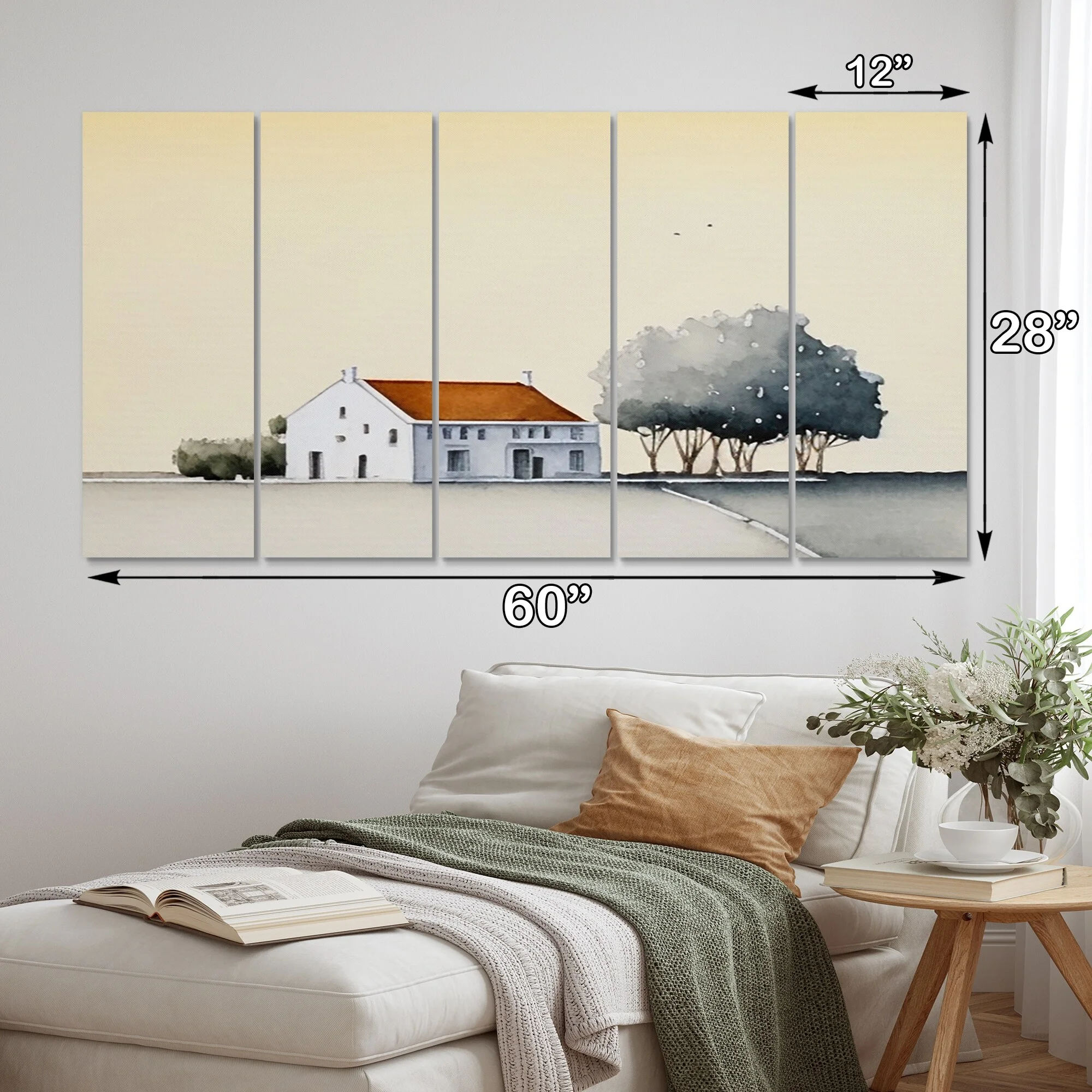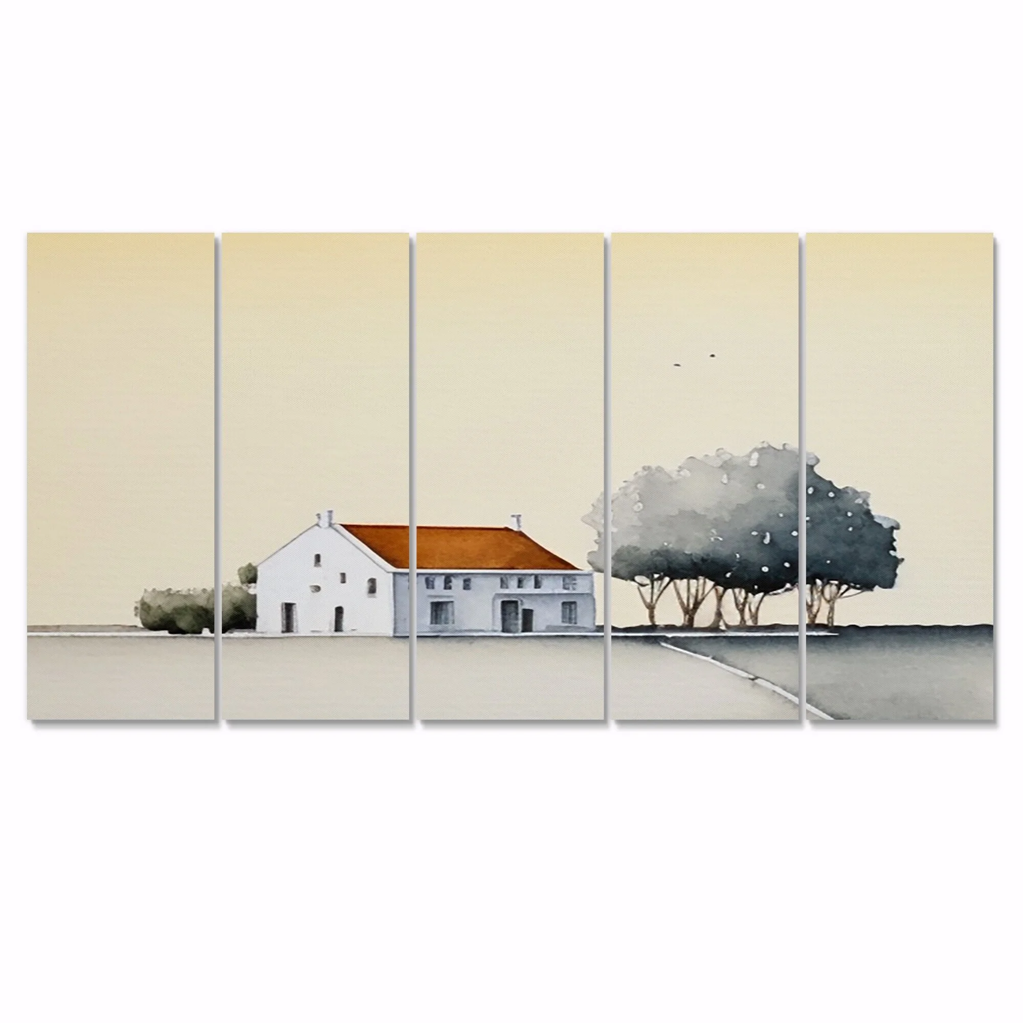 DESIGN ART Designart "Countryhouse In The Countryside" Lake House Cottage Multipanel Canvas Wall Art 60 In. Wide X 32 In. High - 5 Panels Diamond - Curated Treasures Market