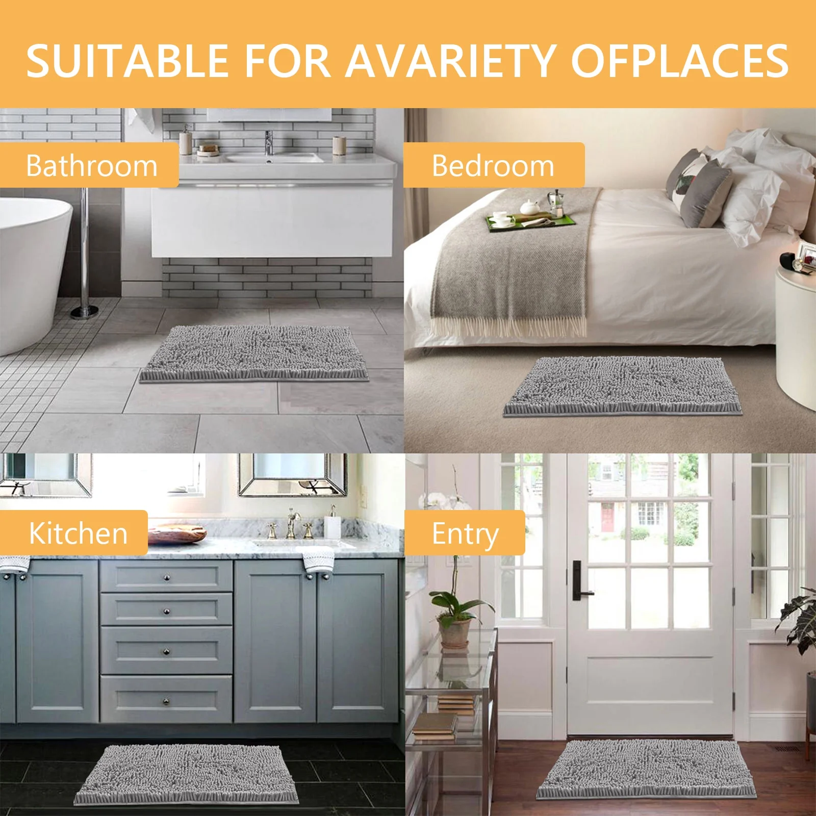 Tripumer 3 Pcs Chenille Bathroom Rug Sets Shaggy Bath Mat Set Carpet Extra Thick Soft Absorbent Bath Rugs Soft Non Slip Machine Wash Light Gray - Curated Treasures Market