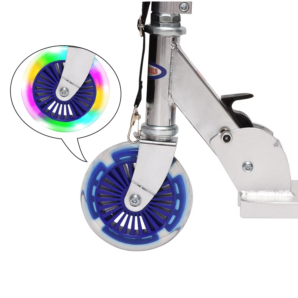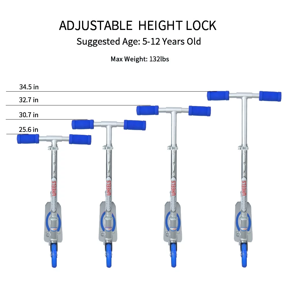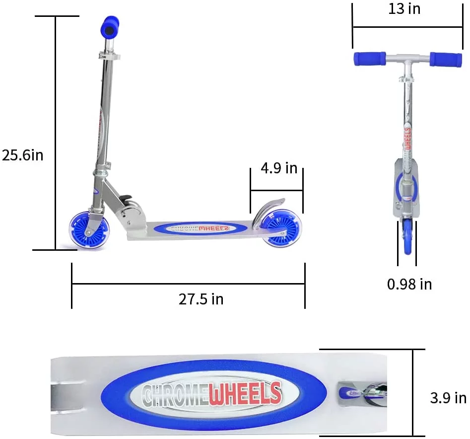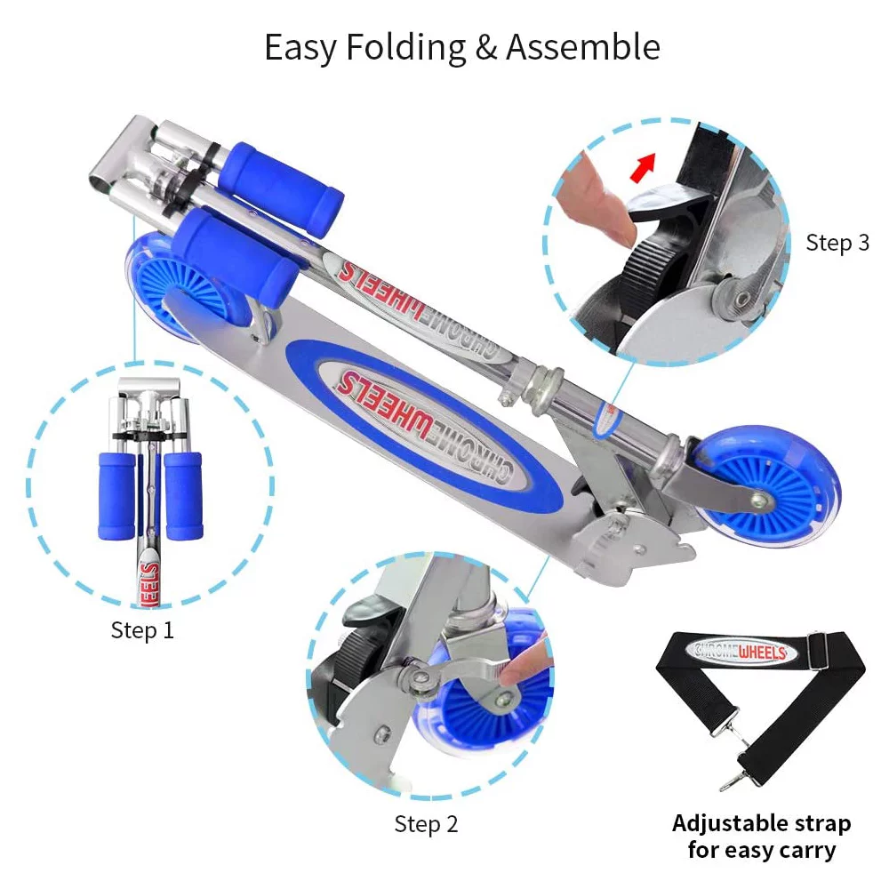 ChromeWheels Kick Scooter for Boys, Deluxe Adjustable Handle Kids Scooter Light up wheel with Kickstand age 5 Blue - Curated Treasures Market