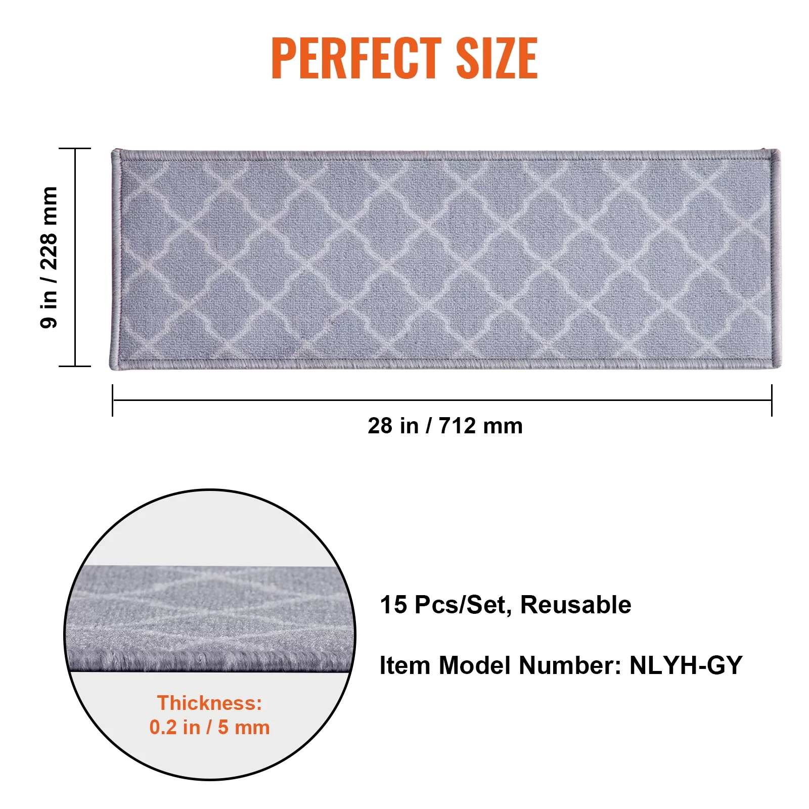 BENTISM Stair Treads 9" x 28" Stairs Carpet Non Slip 15 pcs Indoor Stair Runner for Wooden Steps, Anti Slip Carpet Soft Edging Stair Rugs Mats for Kids Elders and Dogs, Light Gray - Curated Treasures Market