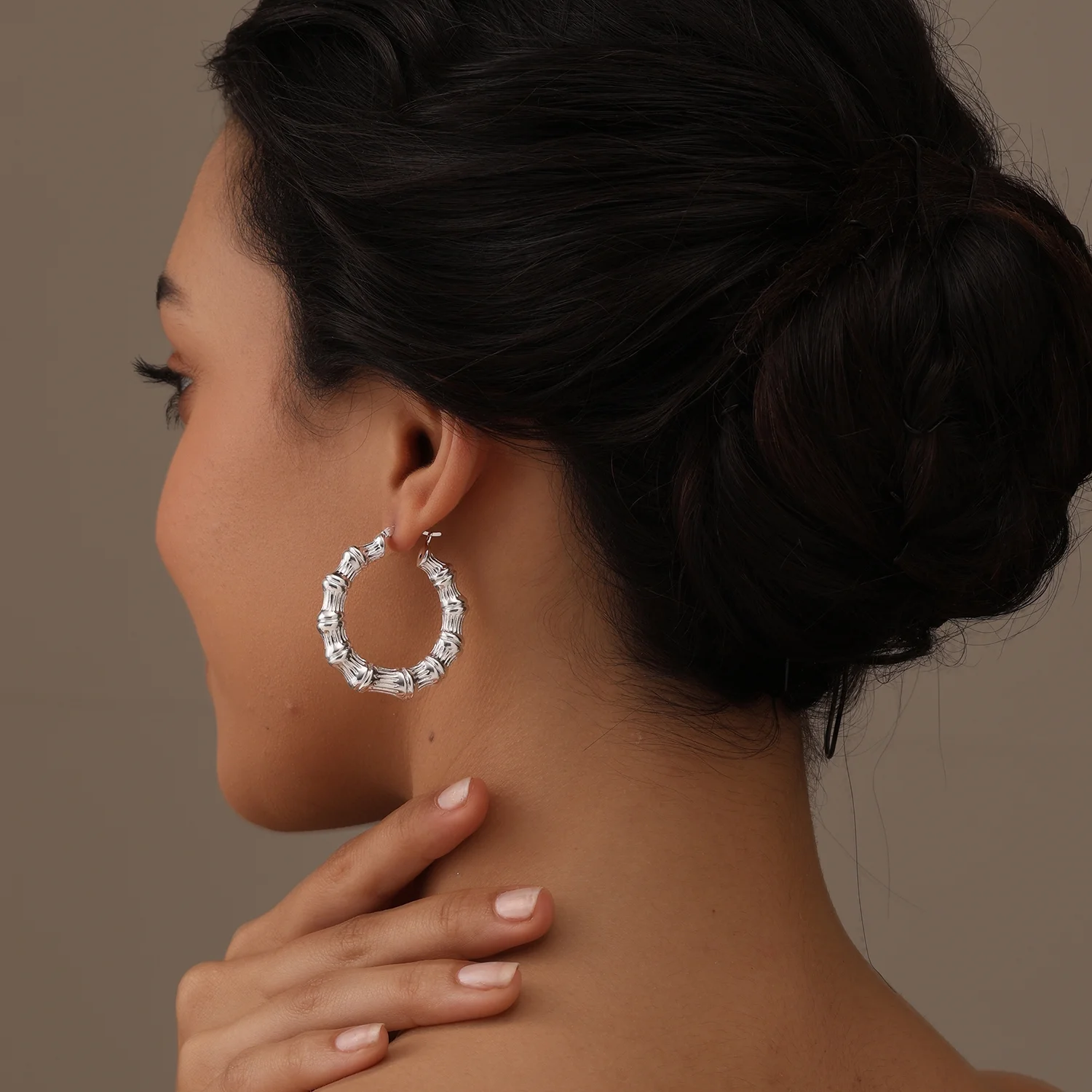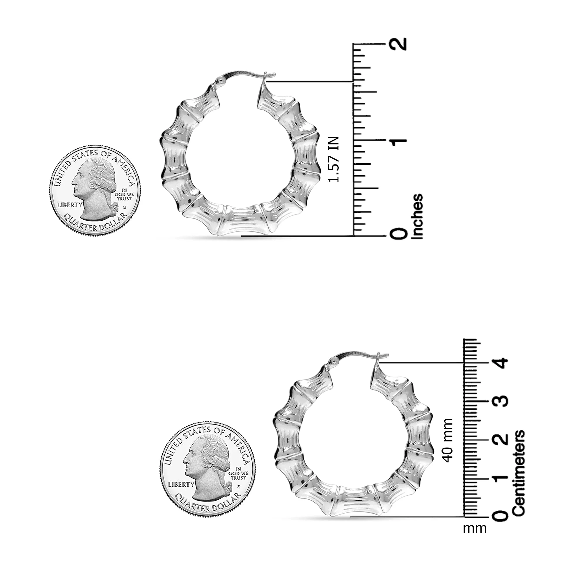 LeCalla 925 Sterling Silver Light-Weight Bamboo Hoop Earrings for Women and Teen Girls 40MM - Curated Treasures Market