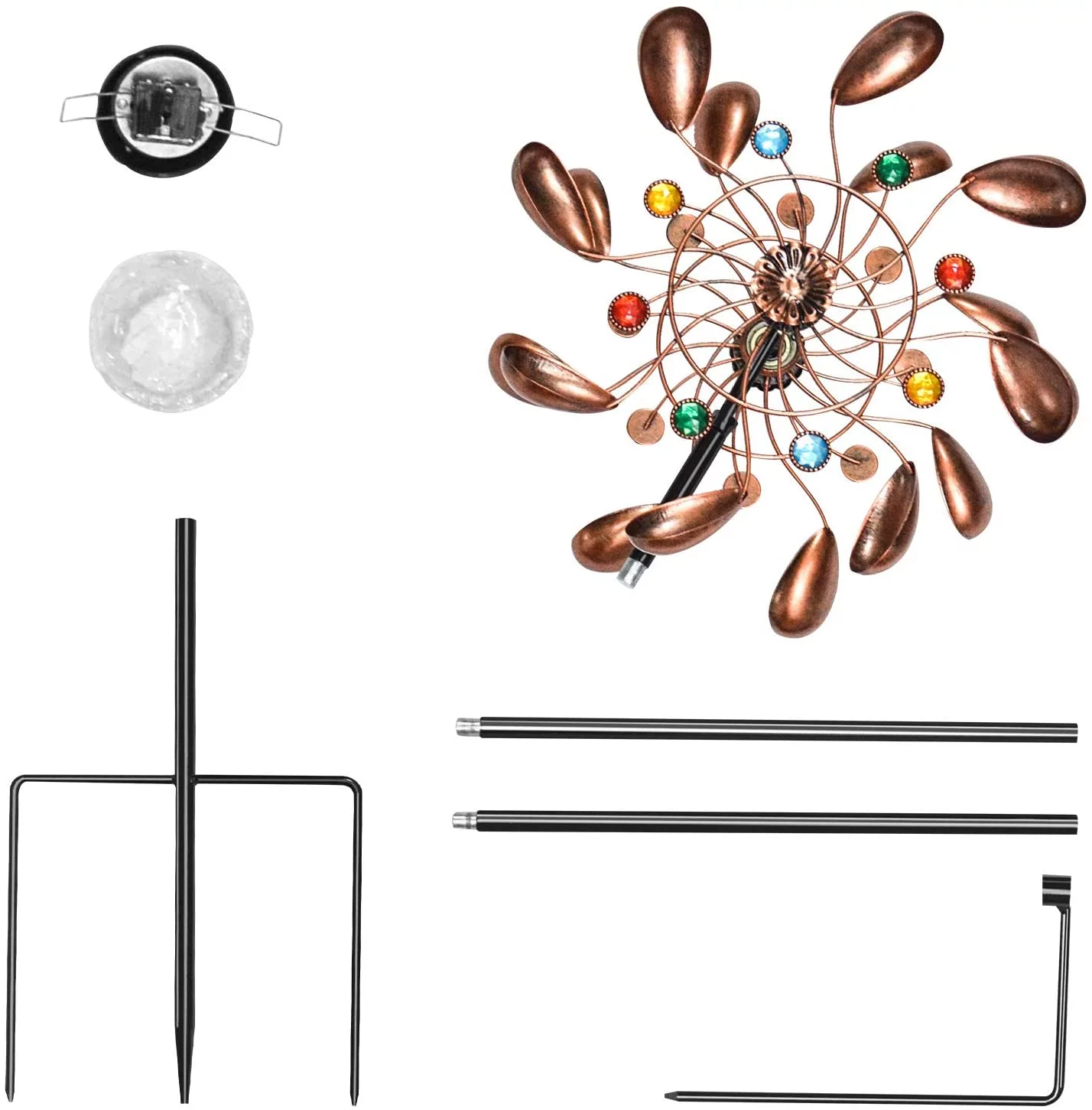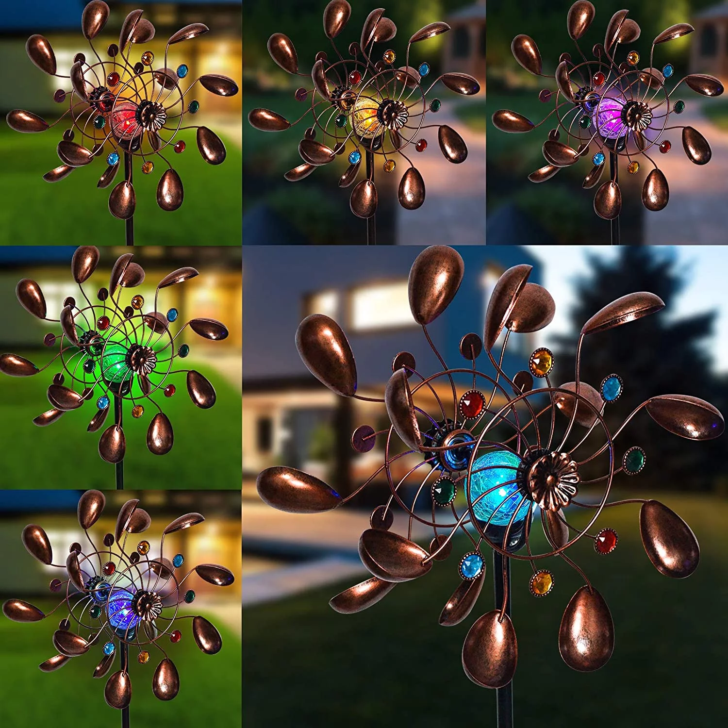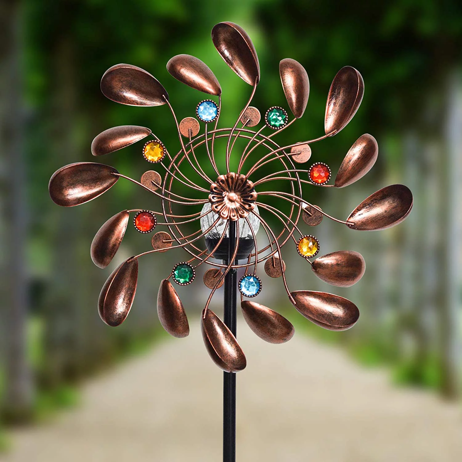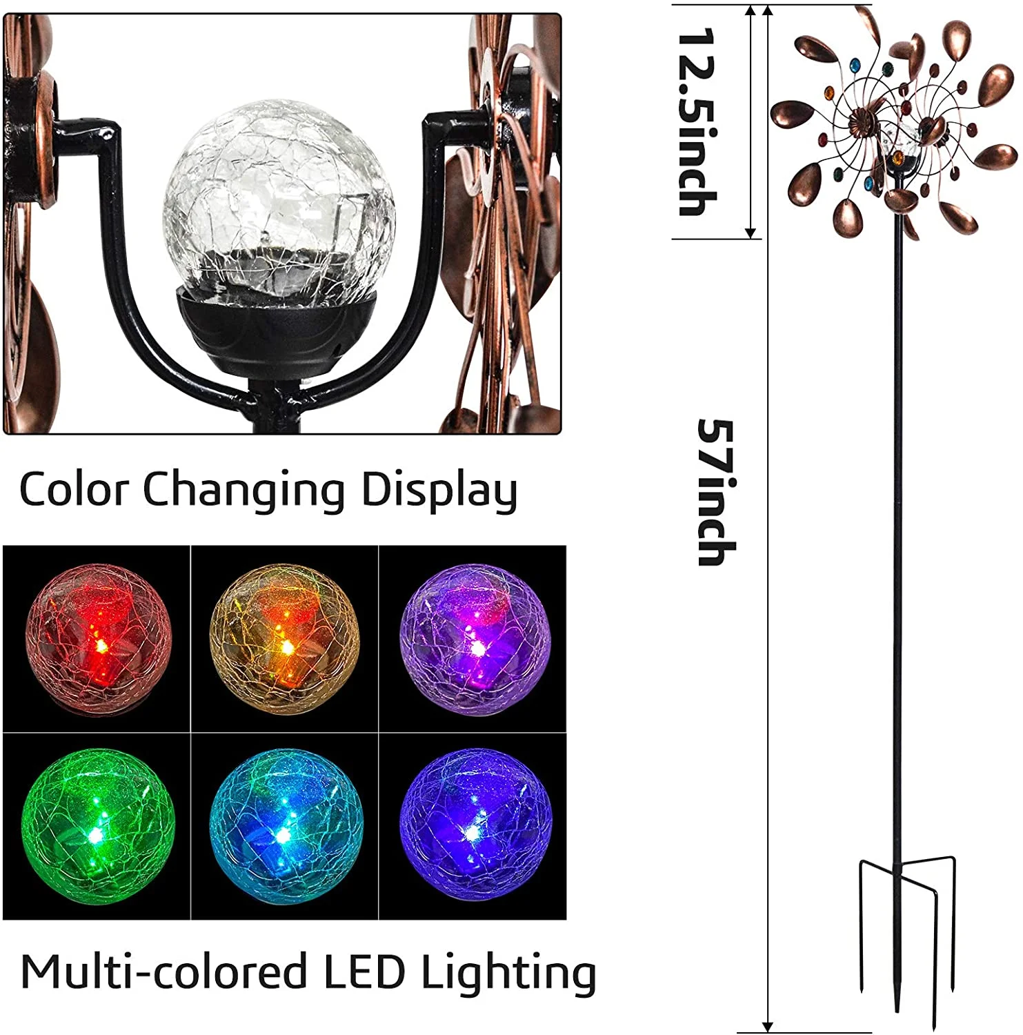 ALLADINBOX 57 Inch Solar Wind Spinner, Glass Ball Windmill Sculpture with Kinetic Dual Direction, Outdoor Garden LED Lights with Multi Color Changing Glass Ball Windmills for Yard Patio Lawn Decor - Curated Treasures Market