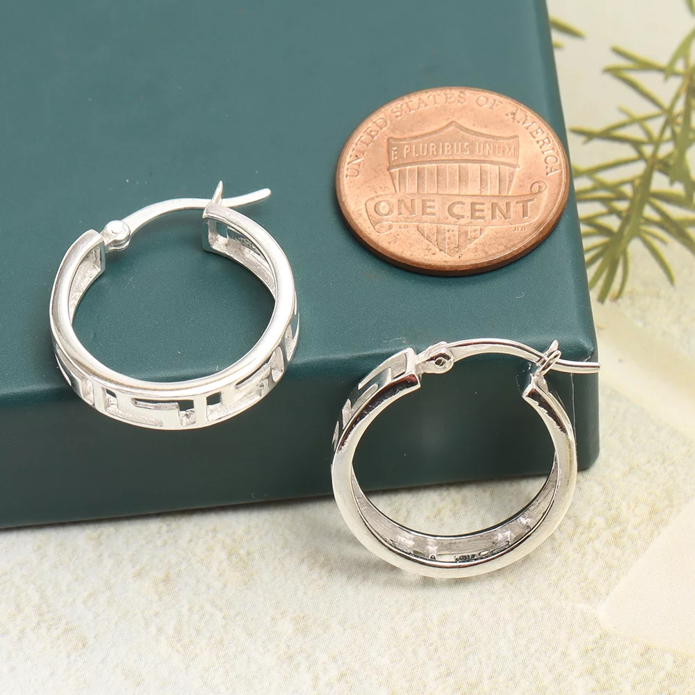 LeCalla 925 Sterling Silver Greek Wall Cut-Out Pattern Light-Weight Click Top Filigree Hoop Earrings for Women and Teen Girls 20MM - Curated Treasures Market