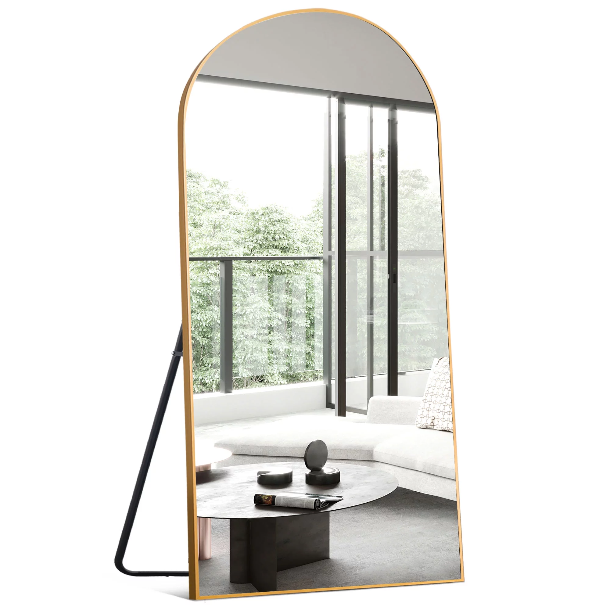 Neutype 71"x32" Modern Aluminum Alloy Arch Full Length Floor Mirror Full Oversize Mirror,Gold - Curated Treasures Market