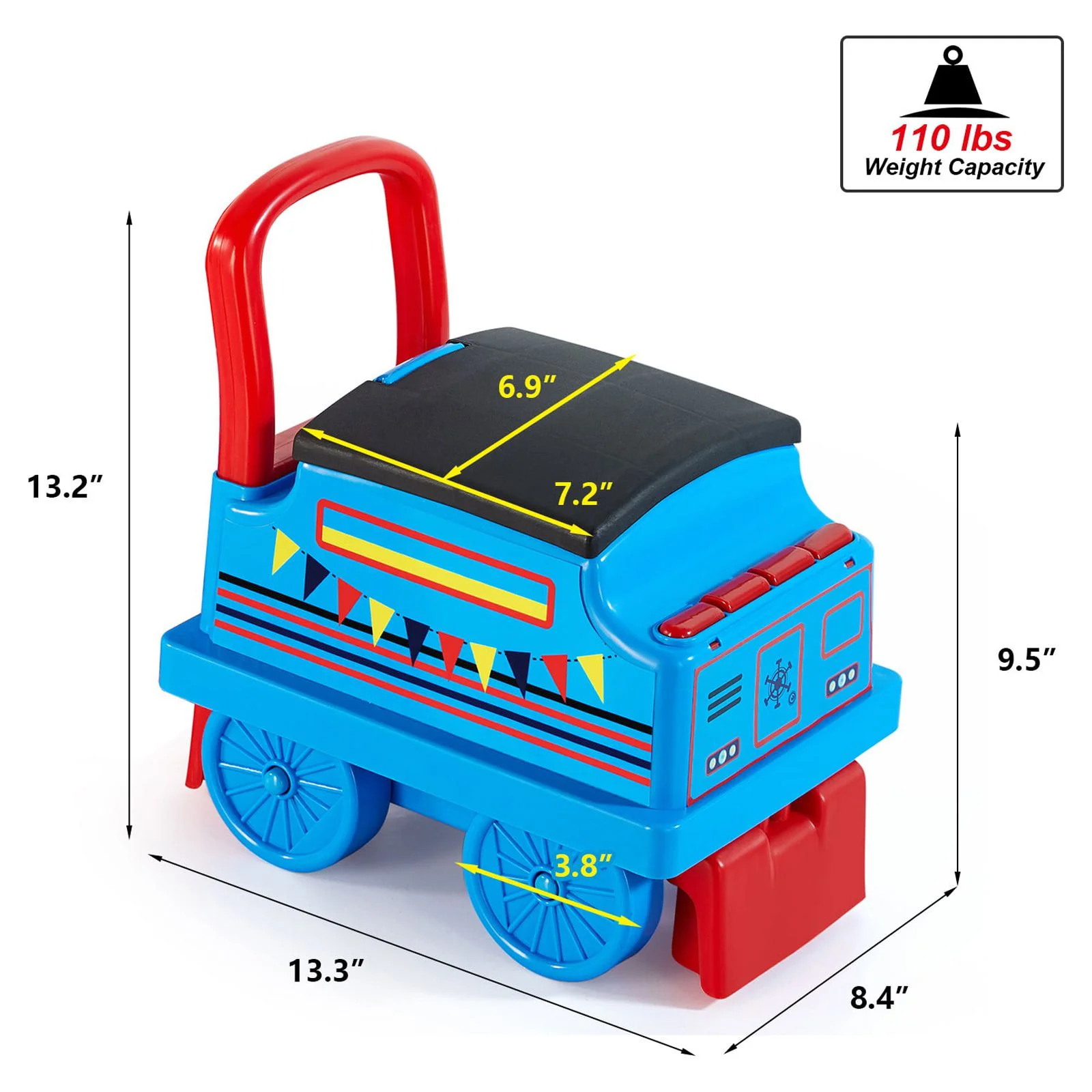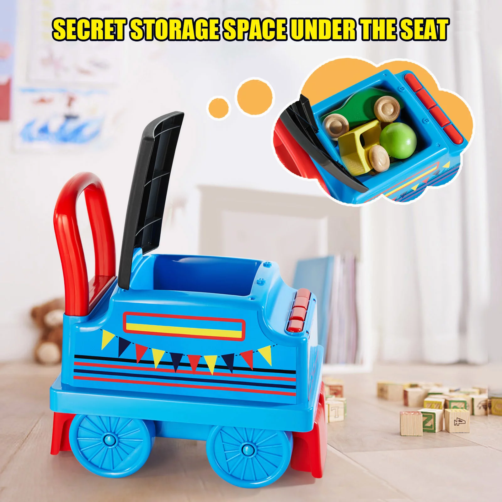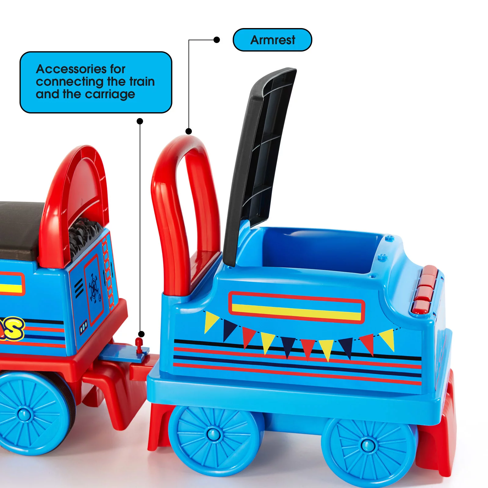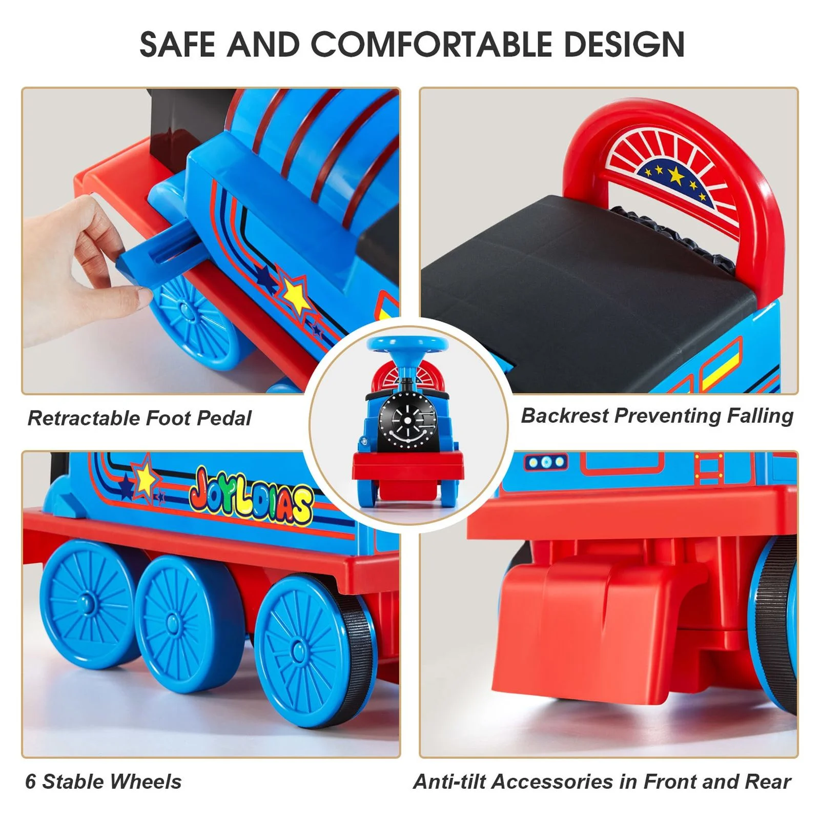 JOYLDIAS Blue 6V Kids Electric Ride on Train Toddlers Age 1-3 Boys Girls w/Curved Tracks,Carriage,Songs,Lights,Horns,Storage - Curated Treasures Market