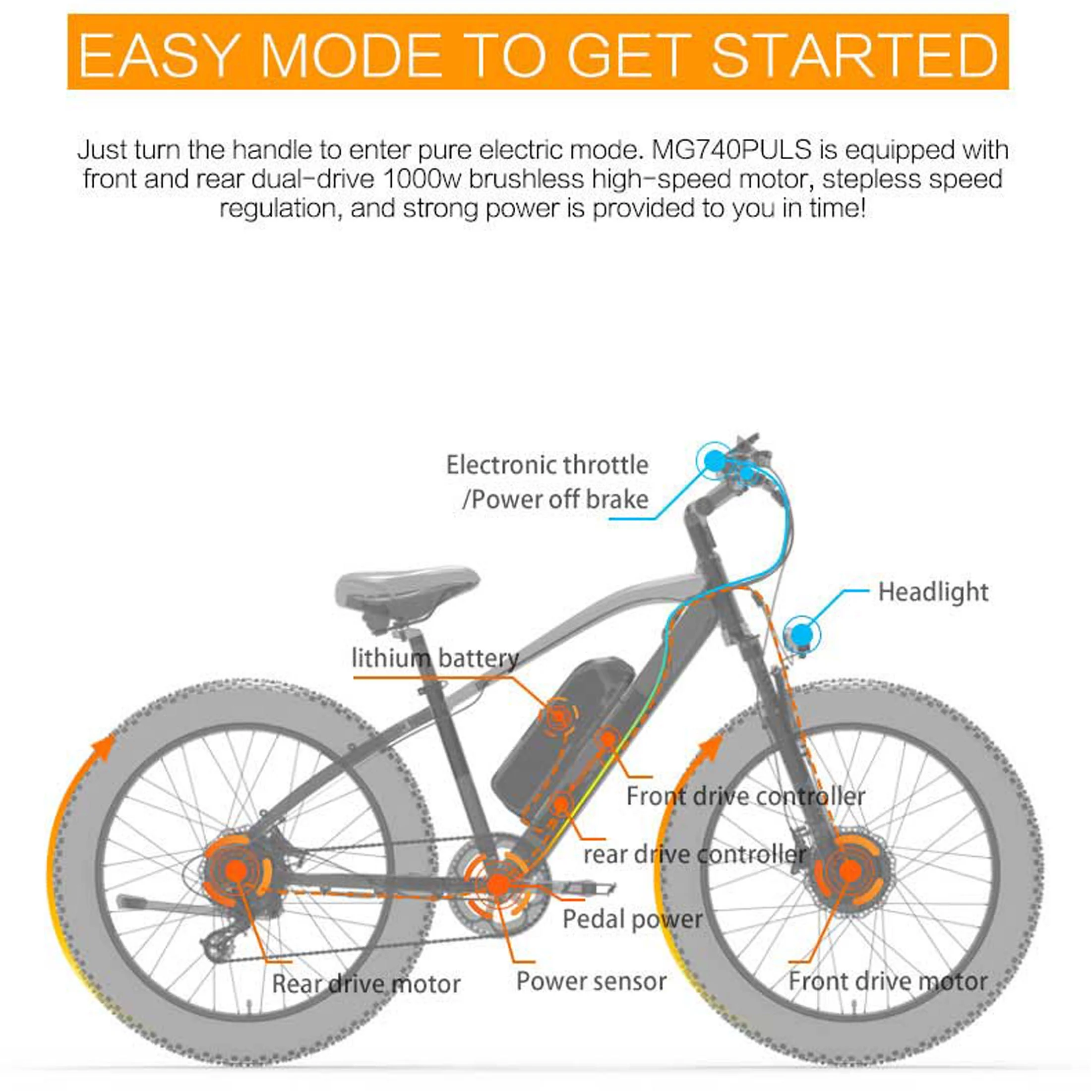 LANKELEISI Electric Bike 26 Inch Fat Tire e-Bike 1000W Dual Motor 48V 20Ah Battery 31Mph Pedal Assist Mountain Bike 7 Speed MG740 Plus - Blue - Curated Treasures Market