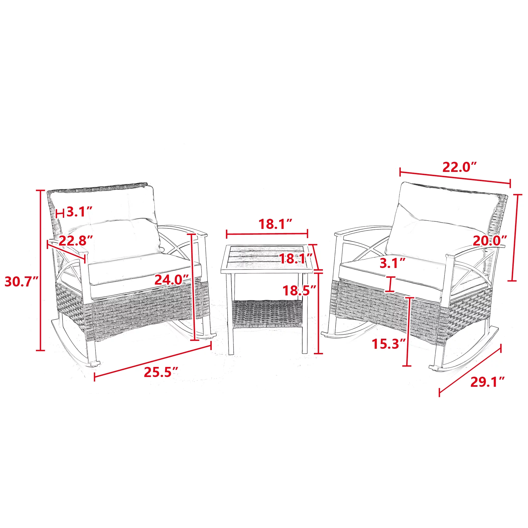 Highsound Outdoor Rocking Chairs Set of 2 with Side Table, 3 Piece Wicker Patio Bistro Set with Premium Fabric Cushions Outdoor Furniture (Brown Wicker Chair & Blue Cushion) - Curated Treasures Market
