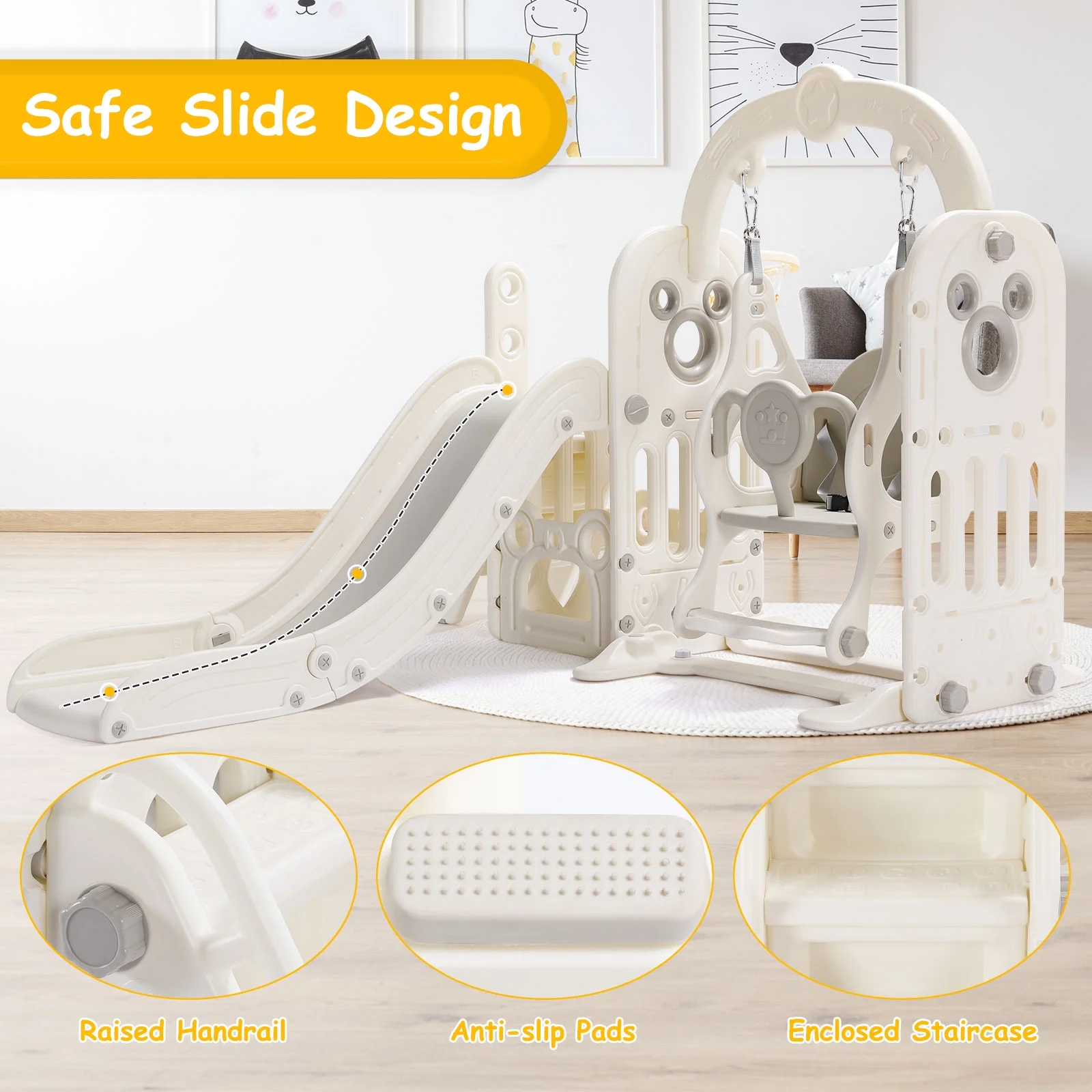 Pirecart 5 in 1 Toddler Slide and Swing Set, Large Toddler Slide Climber Playset with Basketball Hoop - Curated Treasures Market