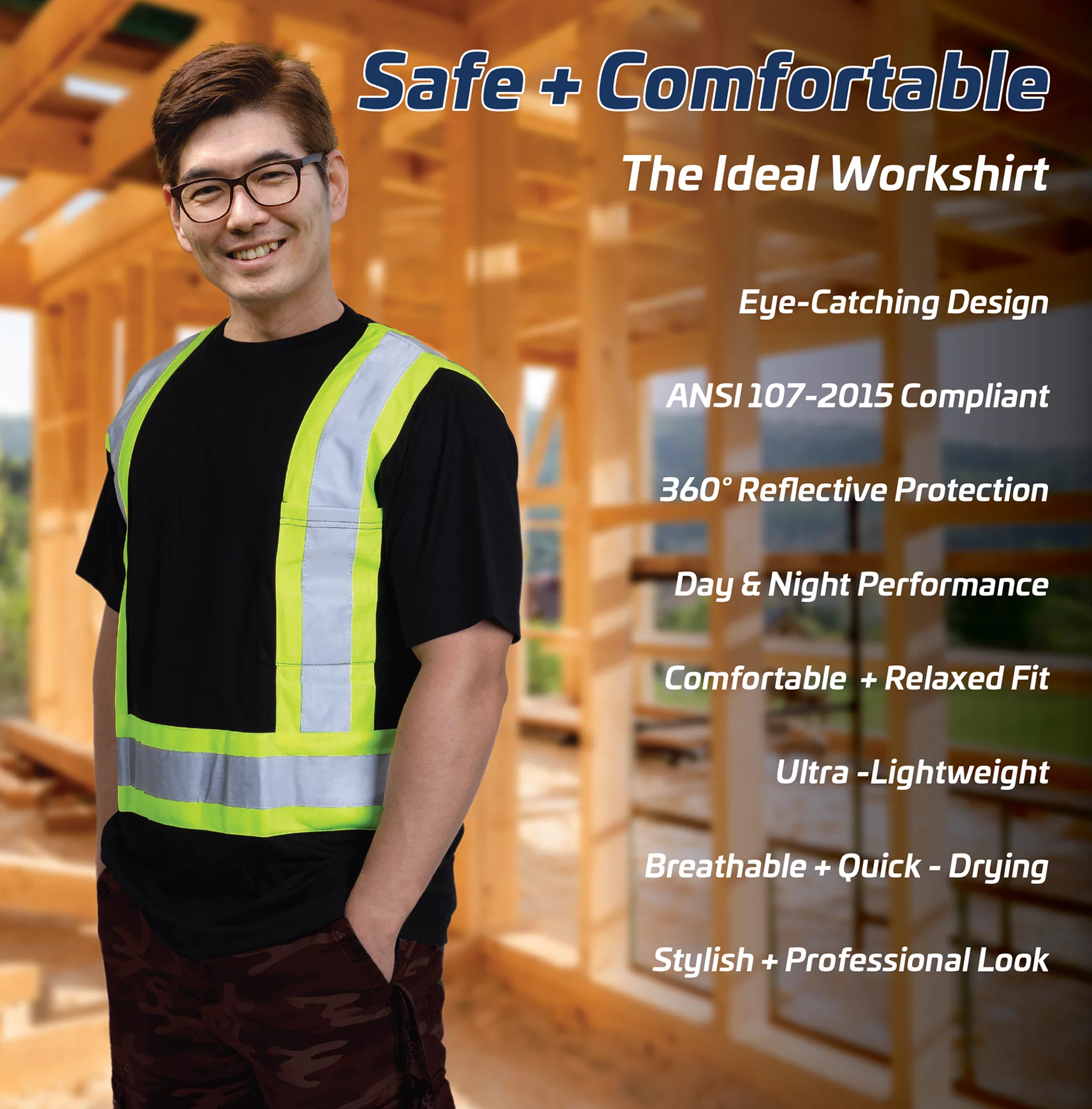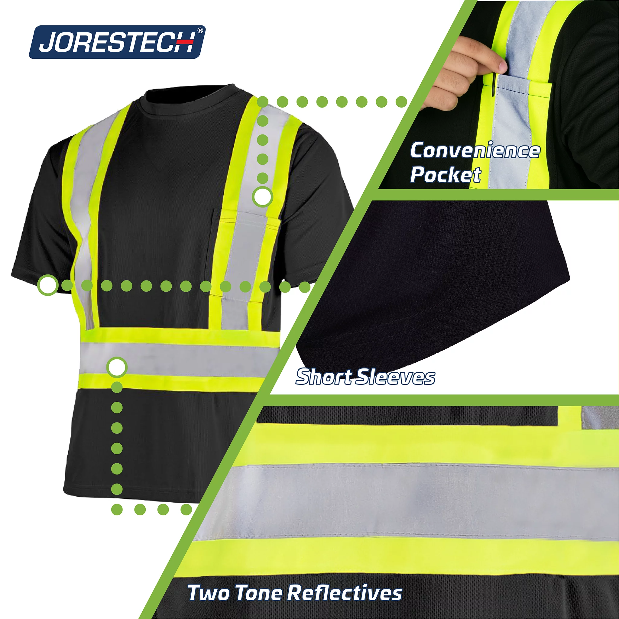 JORESTECH Hi-Vis Short Sleeve Safety Shirt, Two-Toned (Black, S) - Curated Treasures Market