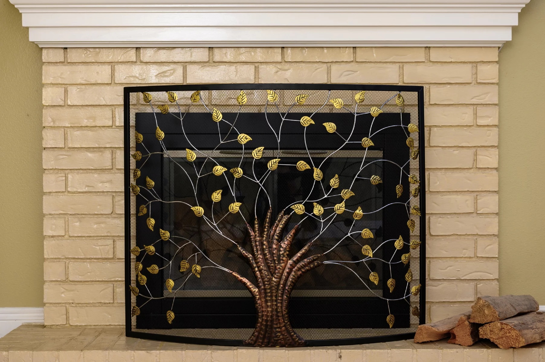 Barton 39" x 33" Single Panel Nature-Inspired Colored Curved Fireplace Screen Tree of Life Decor - Curated Treasures Market