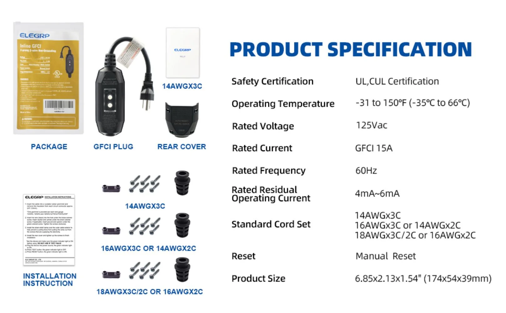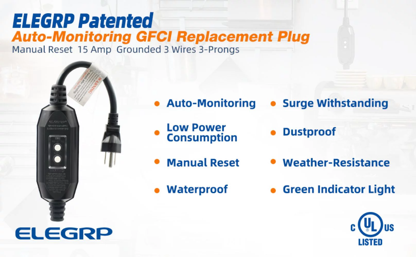 ELEGRP G1215CM G20CMR Patented Auto-Monitoring GFCI Replacement Plug Inline Assembly, Manual Reset 15 Amp Grounded 3 Wires 3-Prongs for Power Tools, Lawn Equipment etc, UL Listed, 1 Pack, Black - Curated Treasures Market