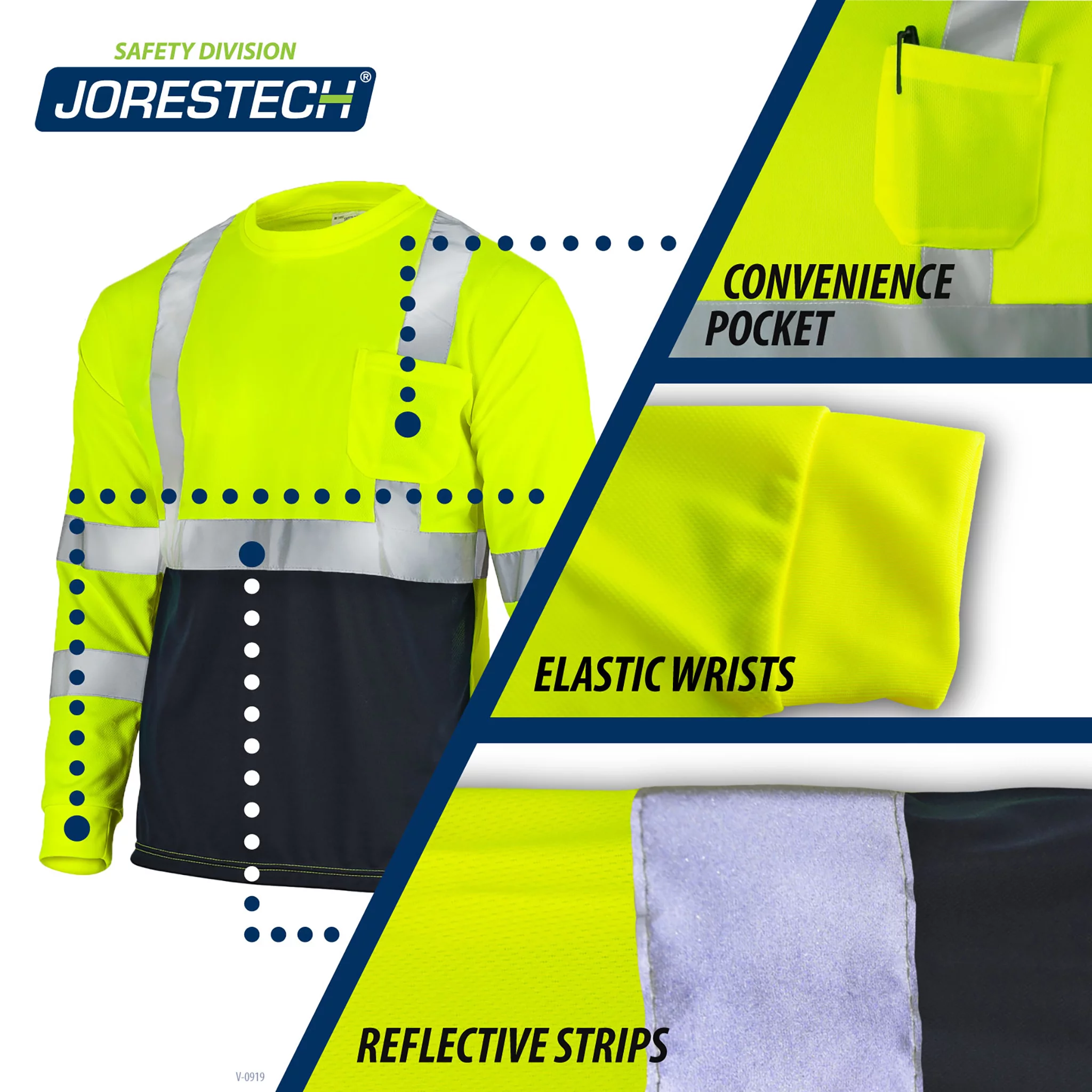 JORESTECH 5-Pack Hi-Vis Long Sleeve Safety Shirt, ANSI Class 3 (3XL, Yellow/Black) - Curated Treasures Market