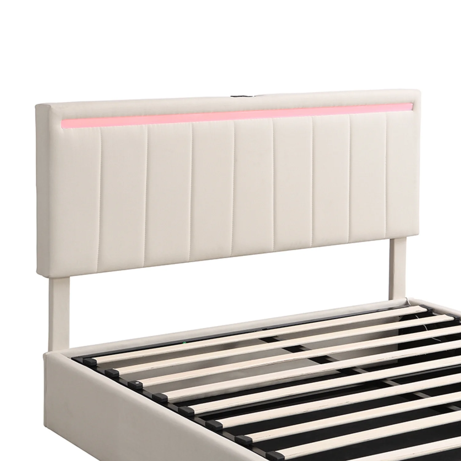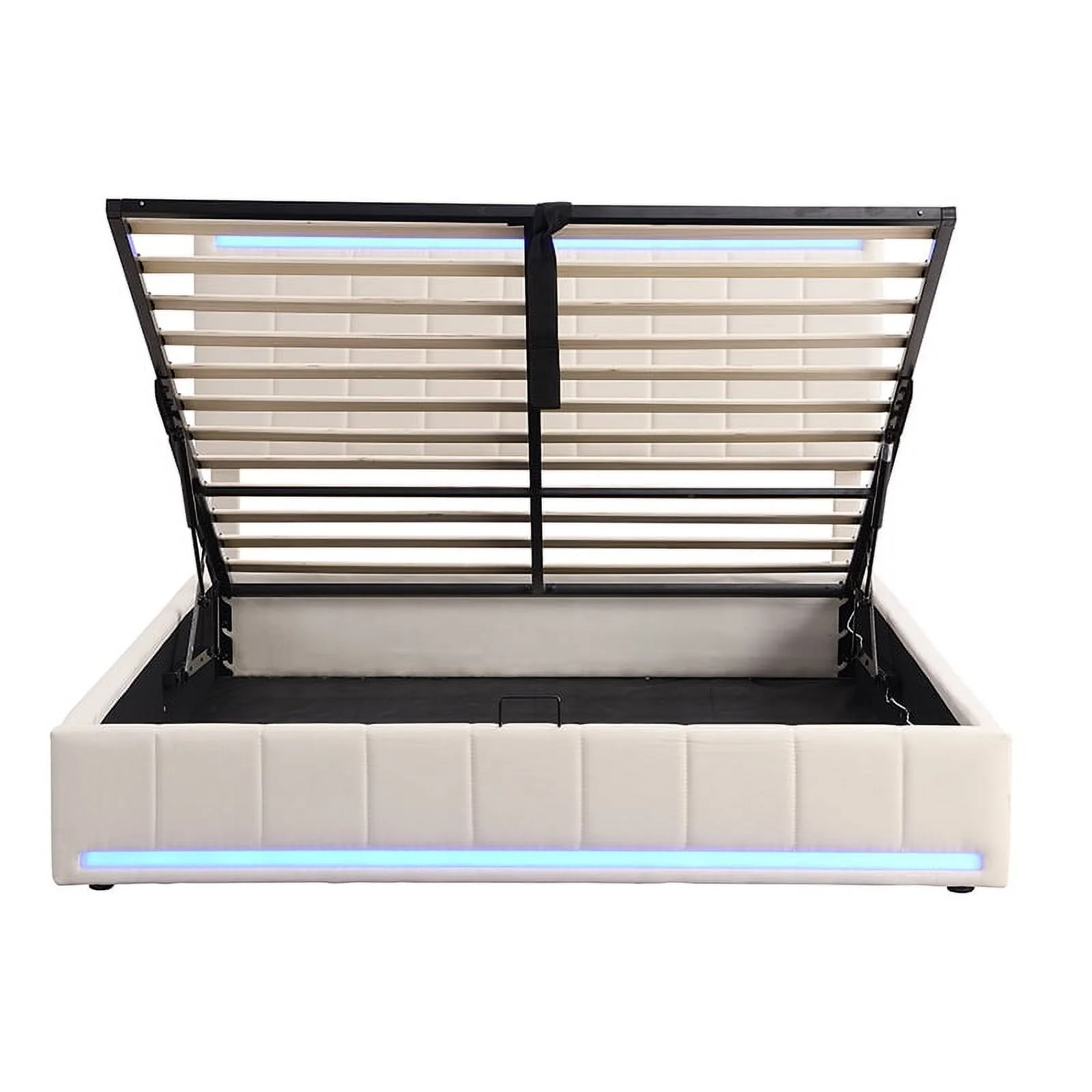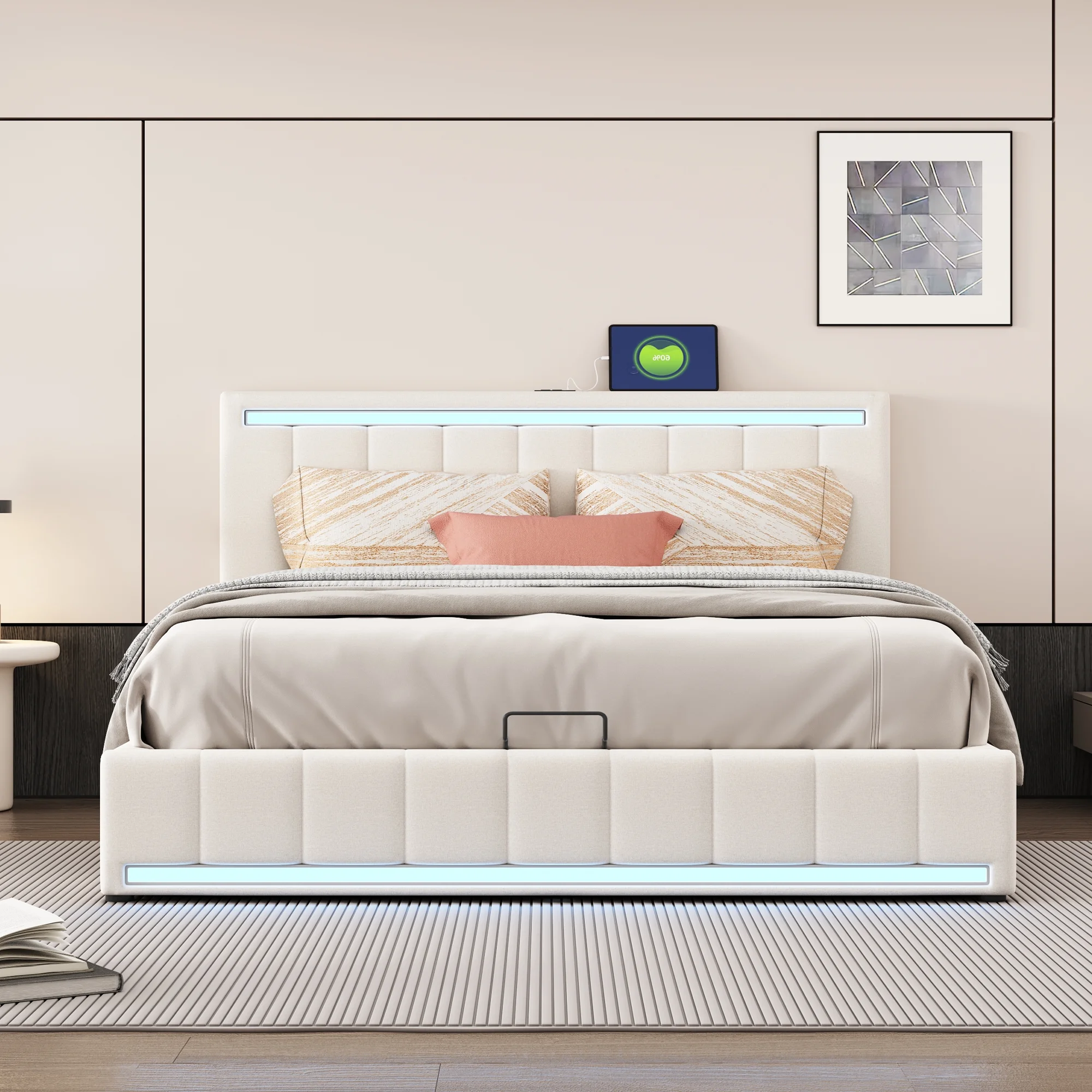 Churanty Queen Upholstered Platform Bed with Hydraulic Storage System and LED Light, Queen Size Platform Bed Frame with USB Ports and Sockets, - Curated Treasures Market