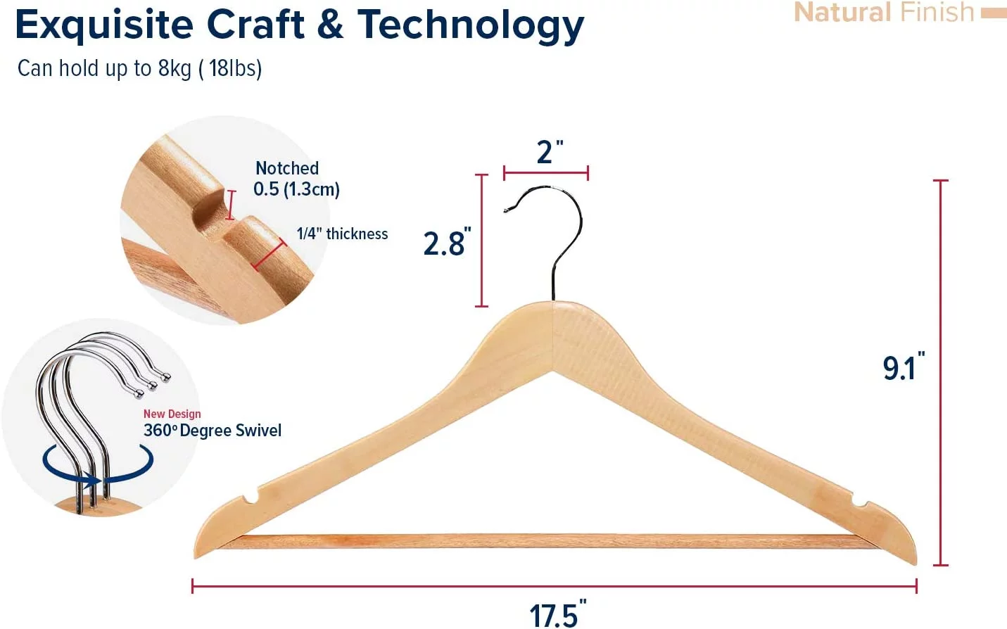 Wooden Hangers 20 Pack - Durable Non Slip Coat Hangers Heavy Duty- Natural Solid Wood Hangers - Clothes Hangers with Chrome Swivel Hooks - Great for Jacket, Dress, Suit Hangers, Home-It - Curated Treasures Market