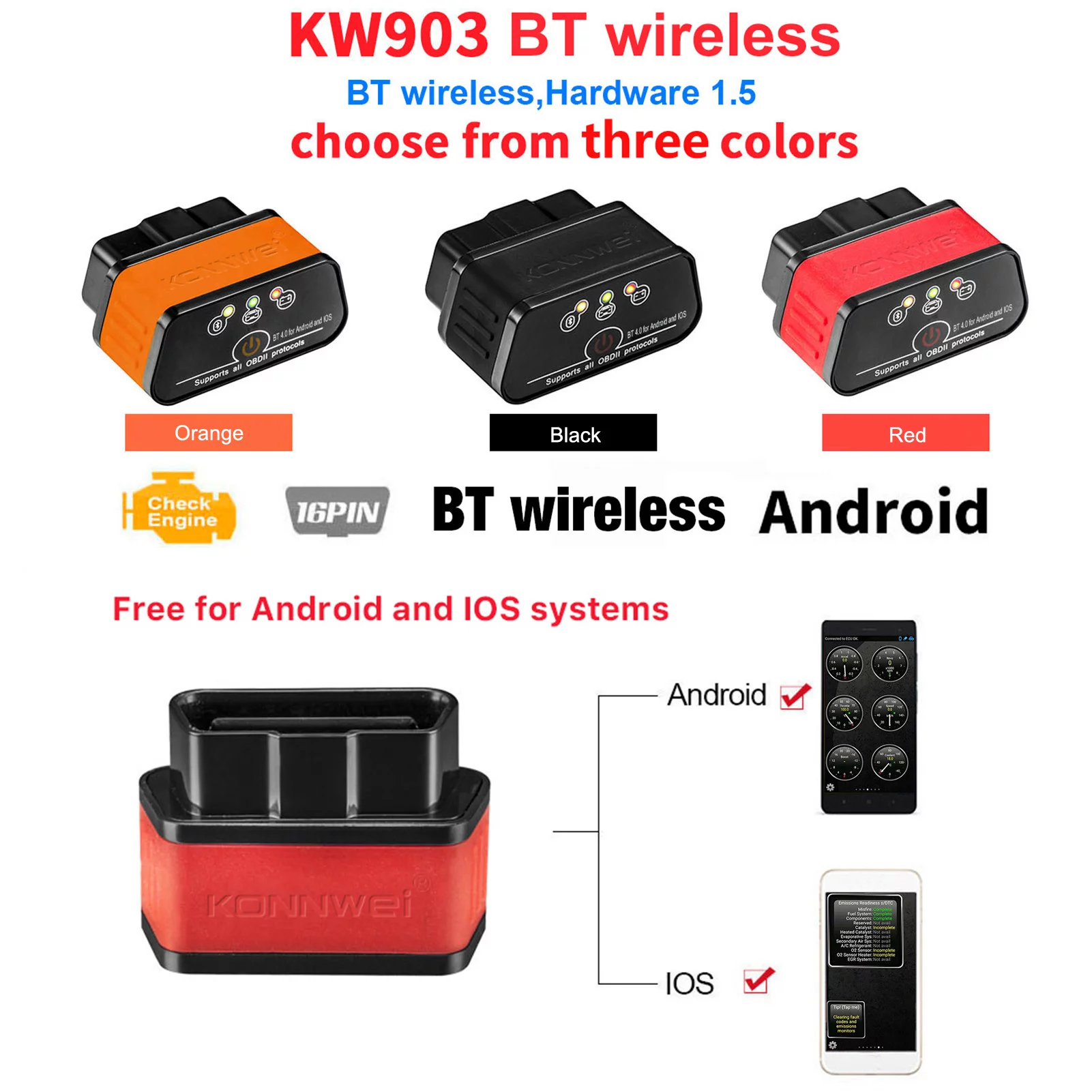 OWSOO KW903 BT 4.0 Wireless OBD-II Car Auto Diagnostic Scan Tools Car Detector Tester Scanner for IOS Android System - Curated Treasures Market