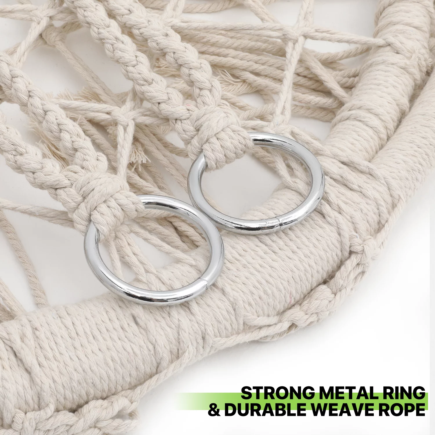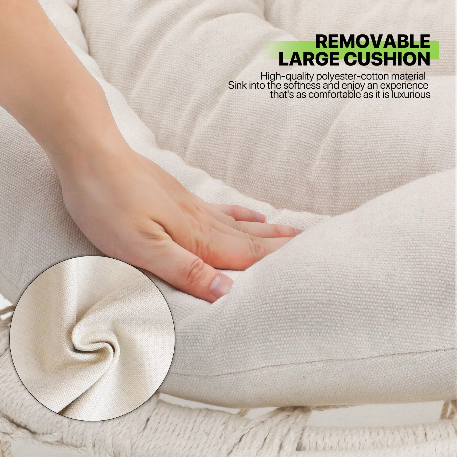 Magshion Hammock Chair Macrame Swing Chair with Cushion, 350lbs Weight Capacity, Hanging Chair Cotton Rope Hammock Chair Swing for Indoor and Outdoor Use, White - Curated Treasures Market