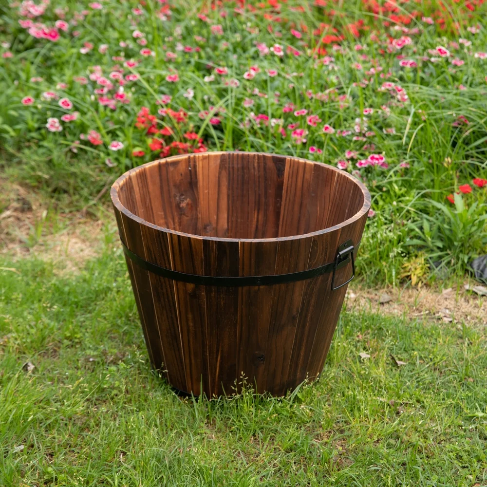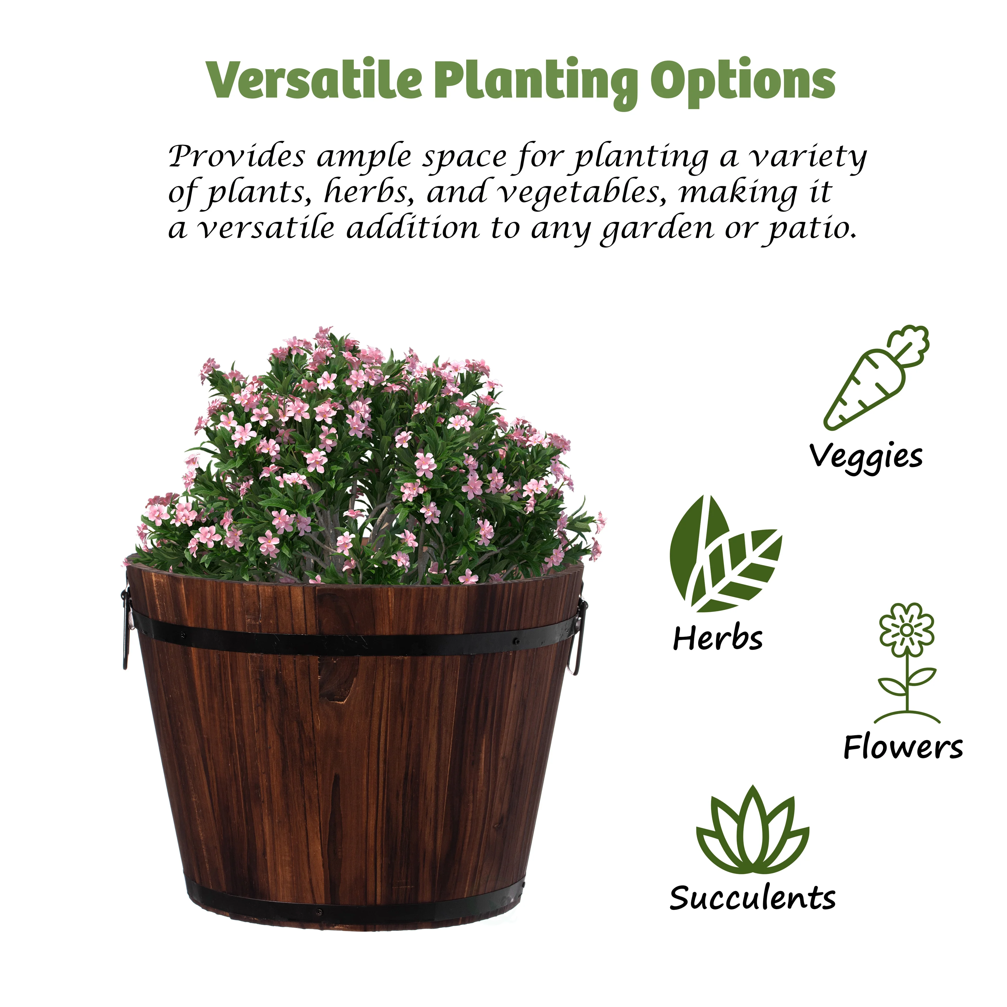 Rustic Wooden Whiskey Barrel Planter with Durable Medal Handles and Drainage Holes - Perfect for Indoor and Outdoor Use - Curated Treasures Market