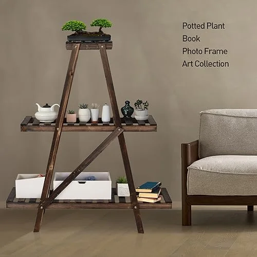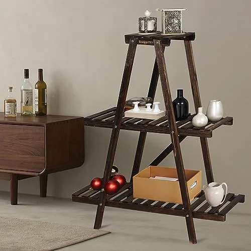 CHGBMN NO TAG 3 Tier Ladder Wood -Shaped Bookshelves Ladder Bookcase Decorative Leaning Ladder Plant Display Rack for Living Room Home Office Kitchen Bedroom Balcony - Curated Treasures Market