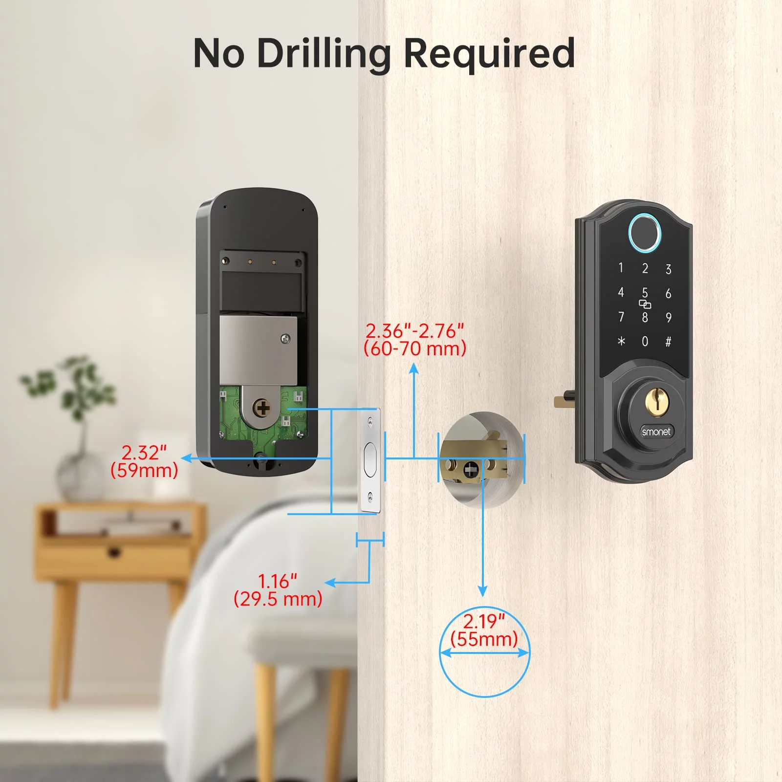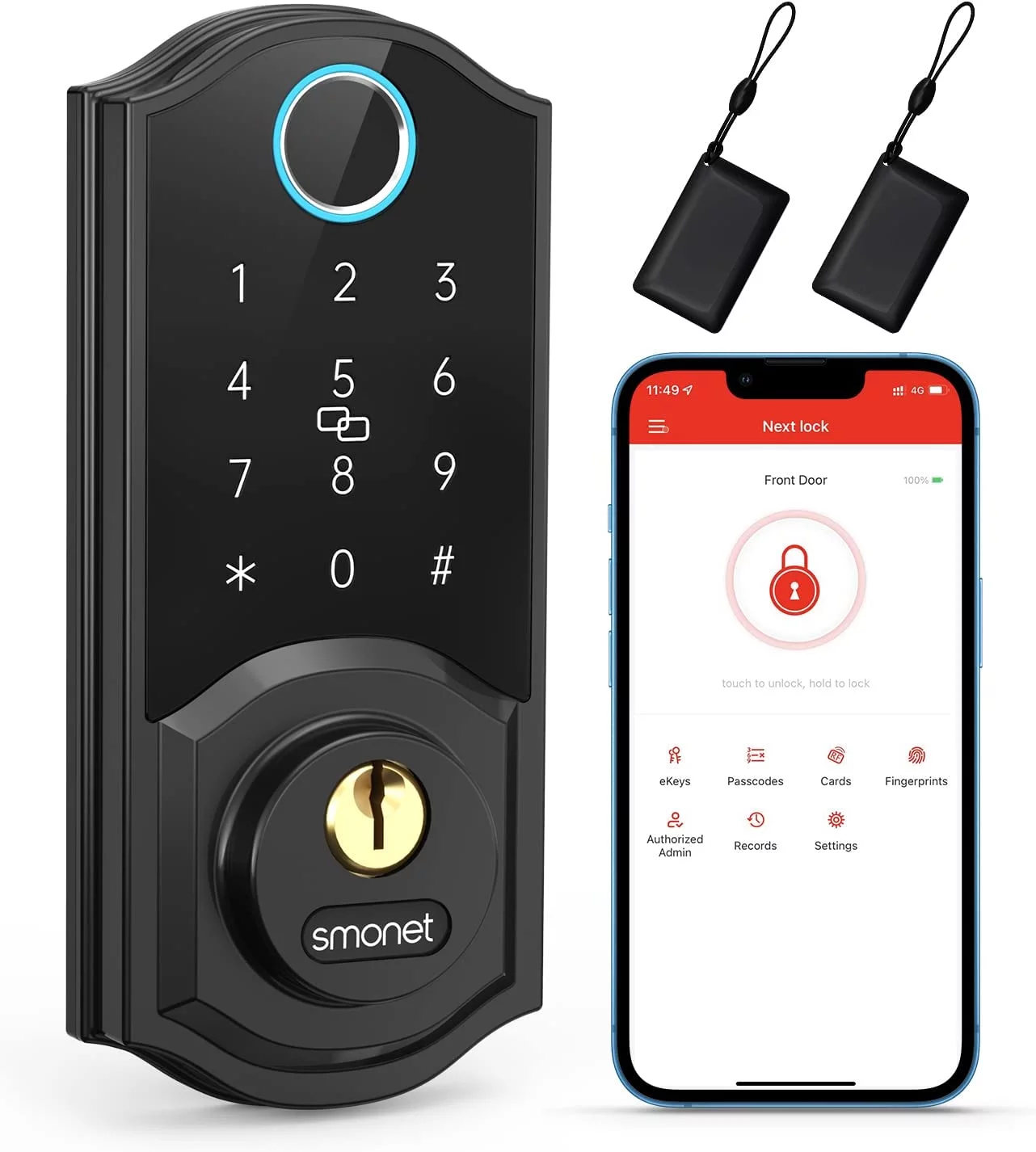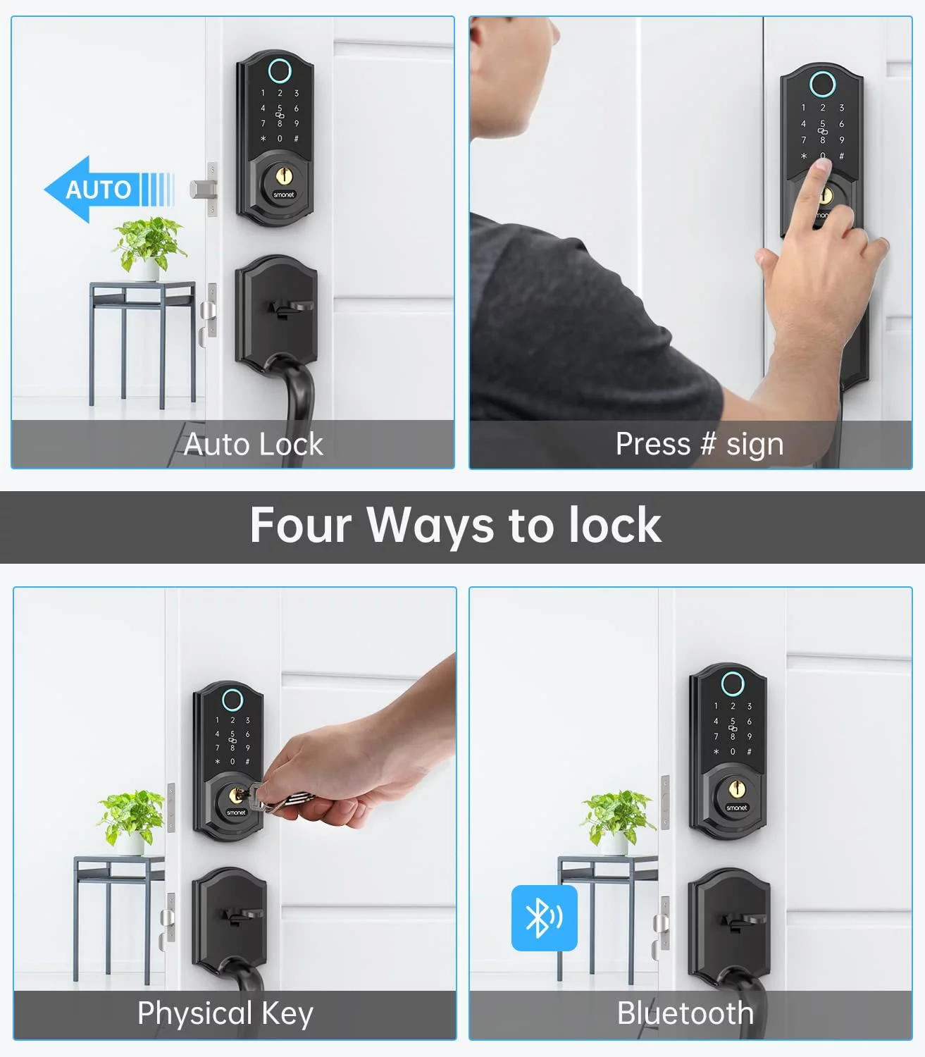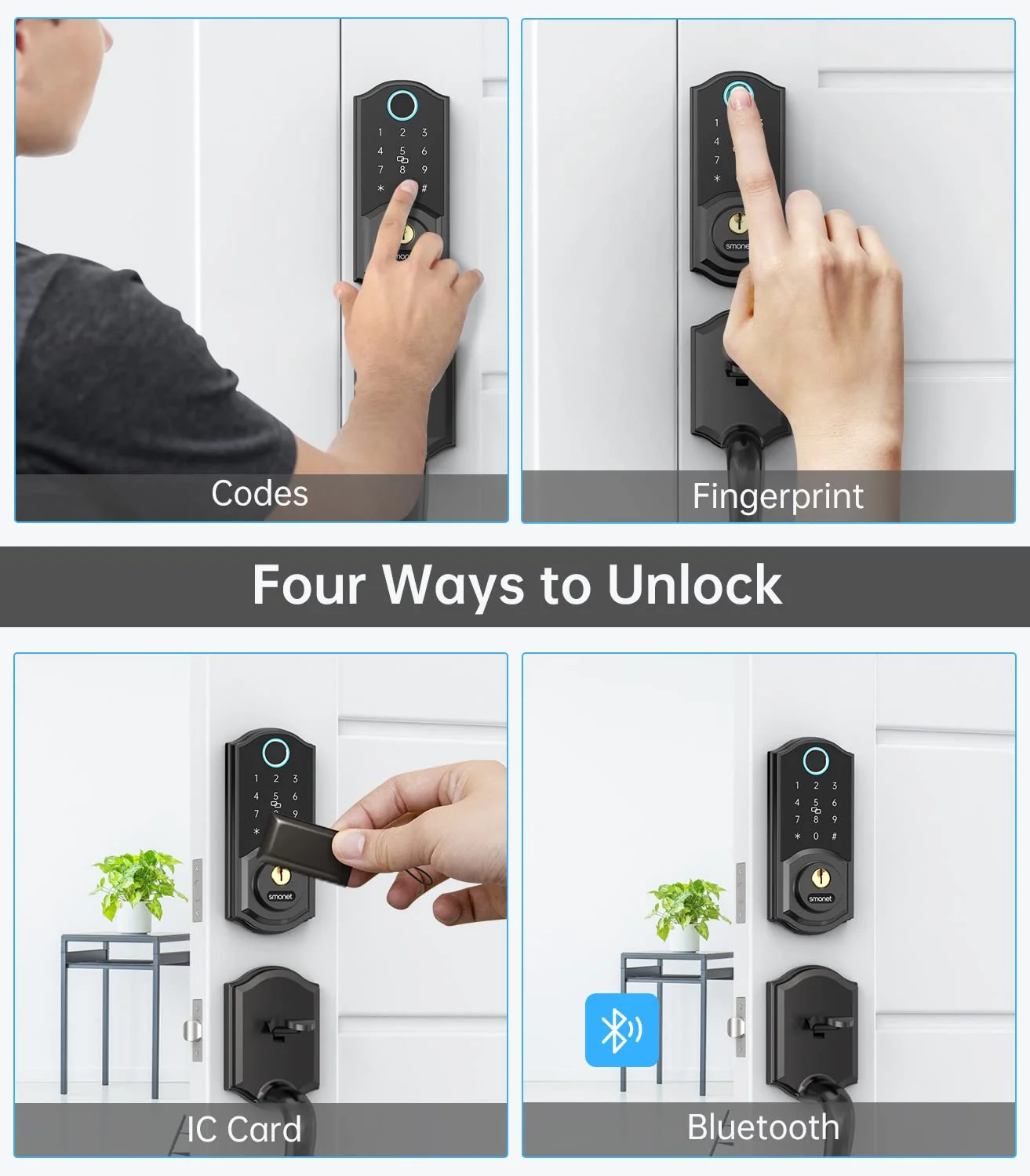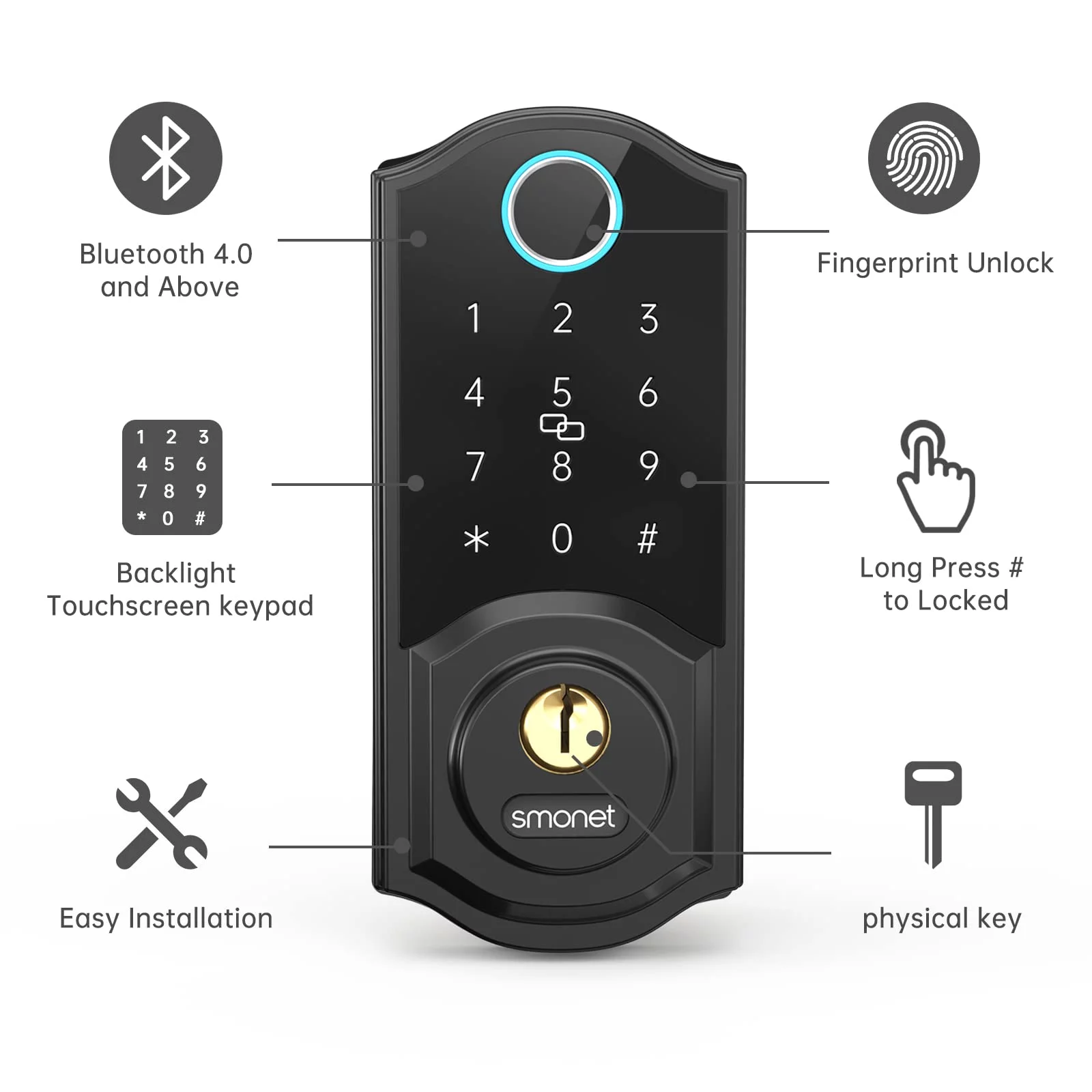 SMONET Smart Lock, Fingerprint Deadbolt Keyless Entry Door Lock with Electronic Bluetooth Digital Keypad for Front Door, Biometrics, Auto Lock, IC Card, Passcode by APP Control for House, Black - Curated Treasures Market