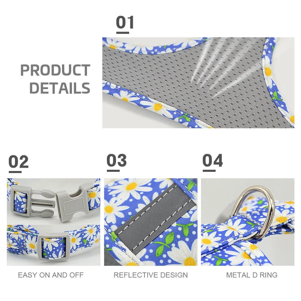 Floral Small Dog Harness and Leash Set Reflective Pet Cat Walking Vest Harnesses - Curated Treasures Market