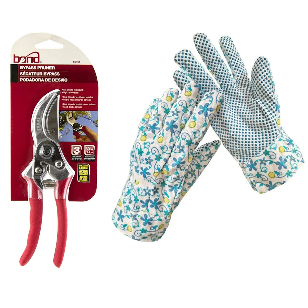 Bond Carbon Steel Bypass 8" Pruner with Garden Women's Floral Gloves, Blue - Curated Treasures Market