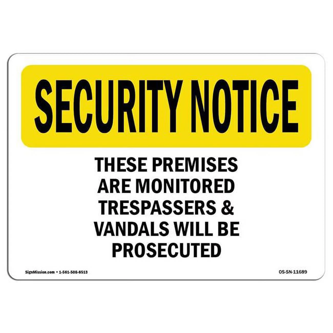 10 x 14 in. OSHA Security Notice Sign - These Premises Are Monitored Trespassers - Curated Treasures Market