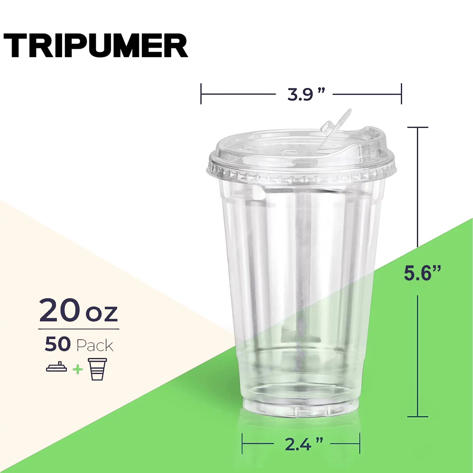 Tripumer [50-Pack]Capacity 20 oz Clear Plastic Cups with Lids BPA Free Disposable Cold Drink Cups Party Drink Cups for Iced Coffee Smoothies Soda Cocktails Juice Tea - Curated Treasures Market