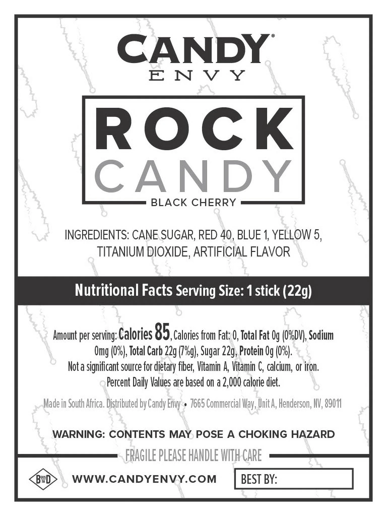 Candy Envy Black Rock Candy Sugar Stick, Black Cherry Flavored, 12 Count, Indiv. Wrapped - Curated Treasures Market