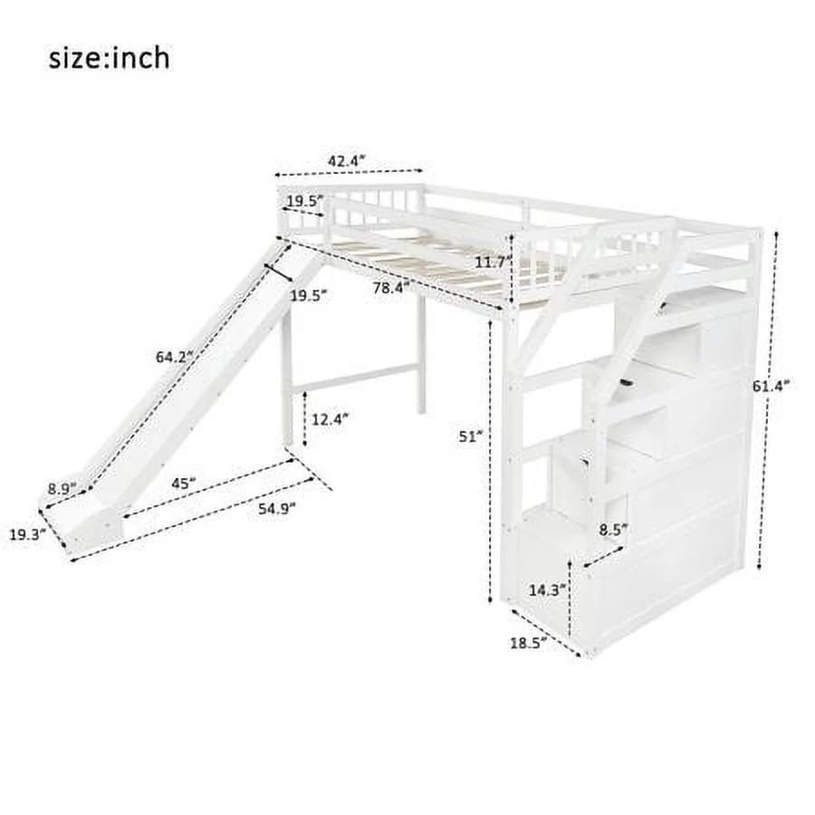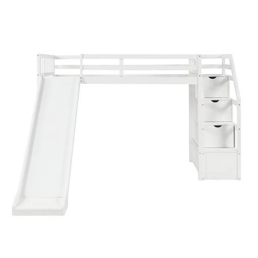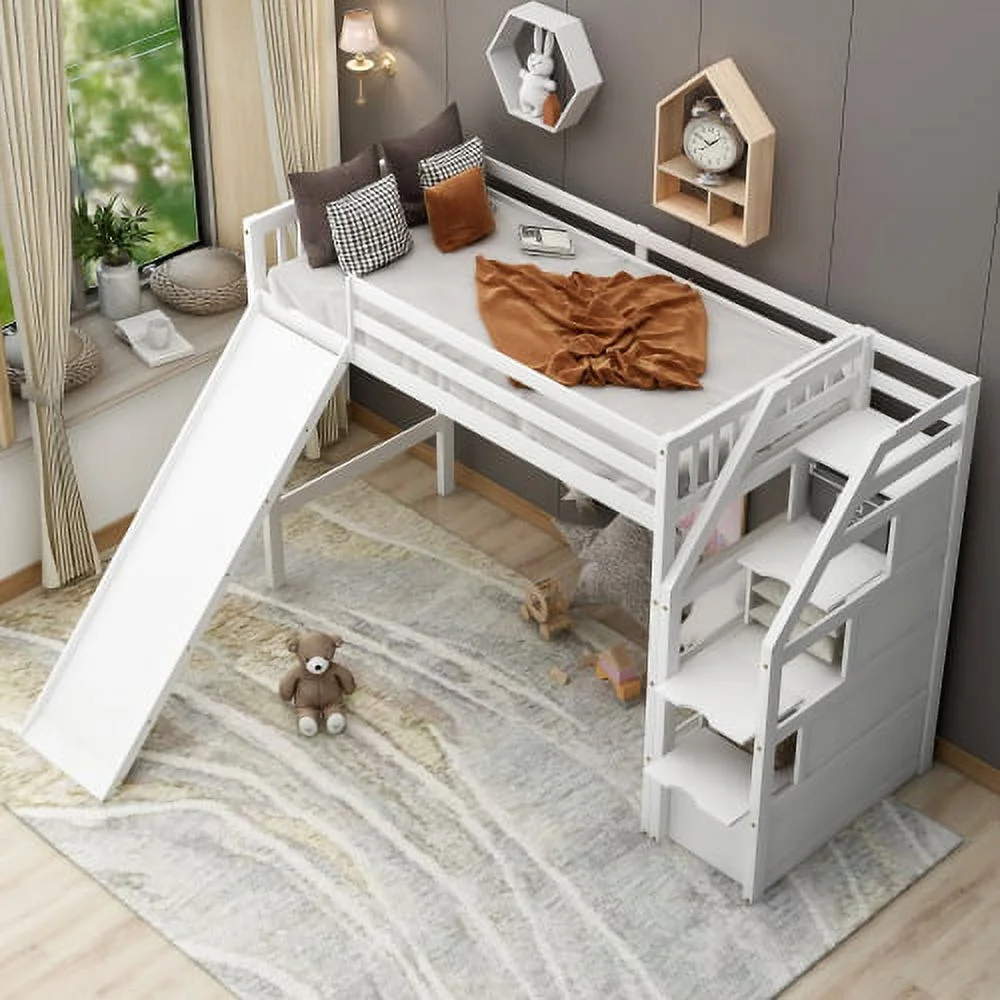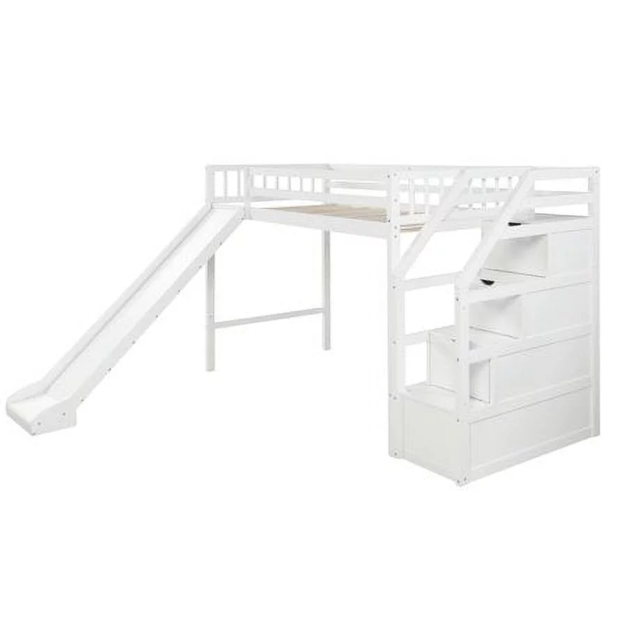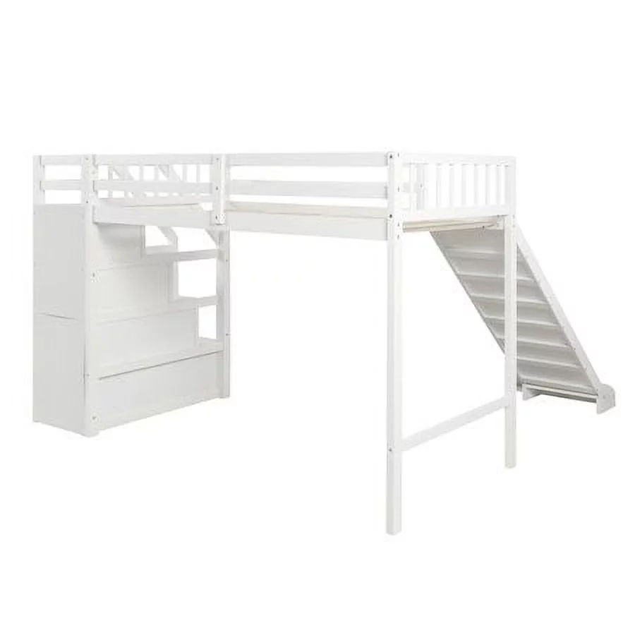 CHURANTY Twin size Wood Loft Bed with Slide and Storage Stairs,White - Curated Treasures Market