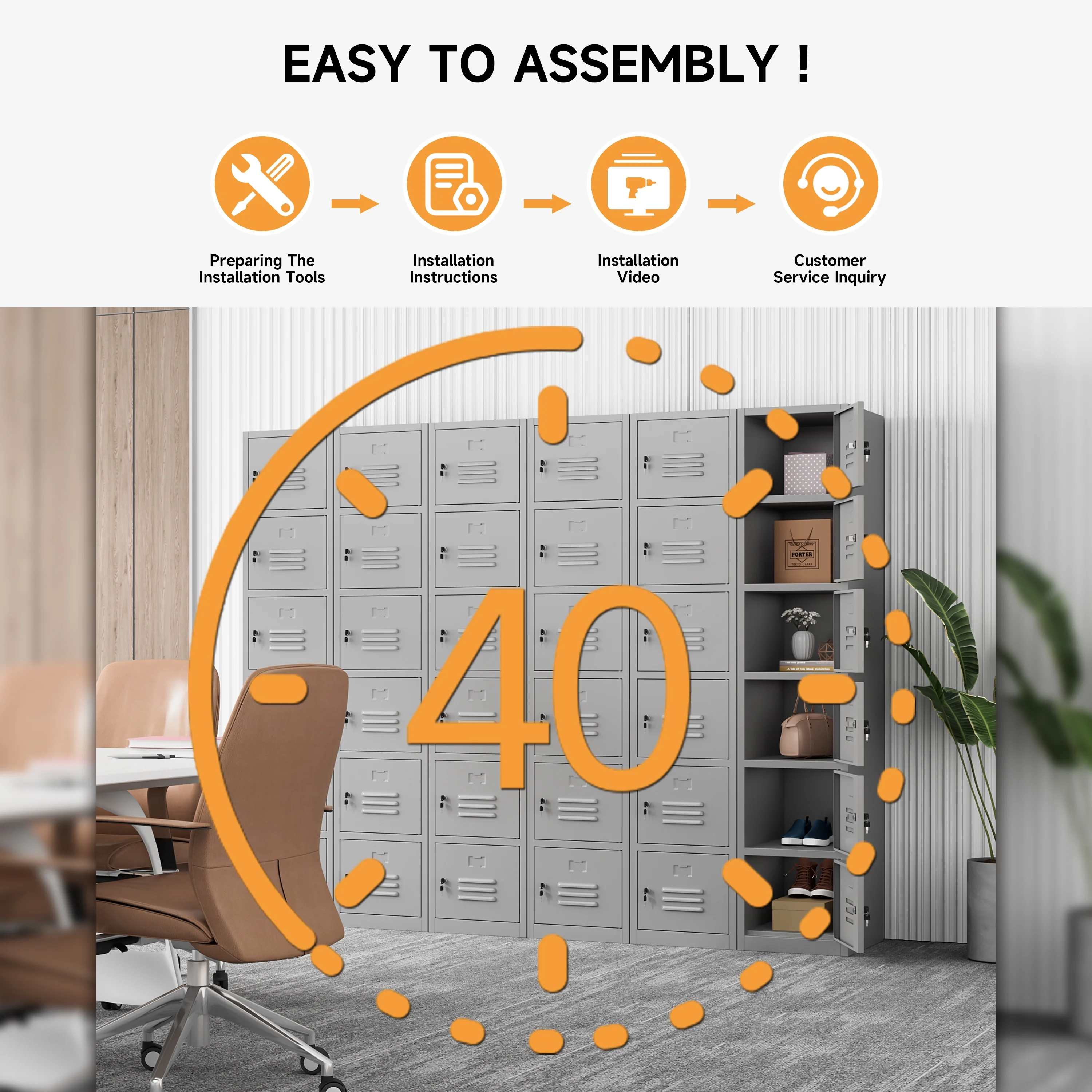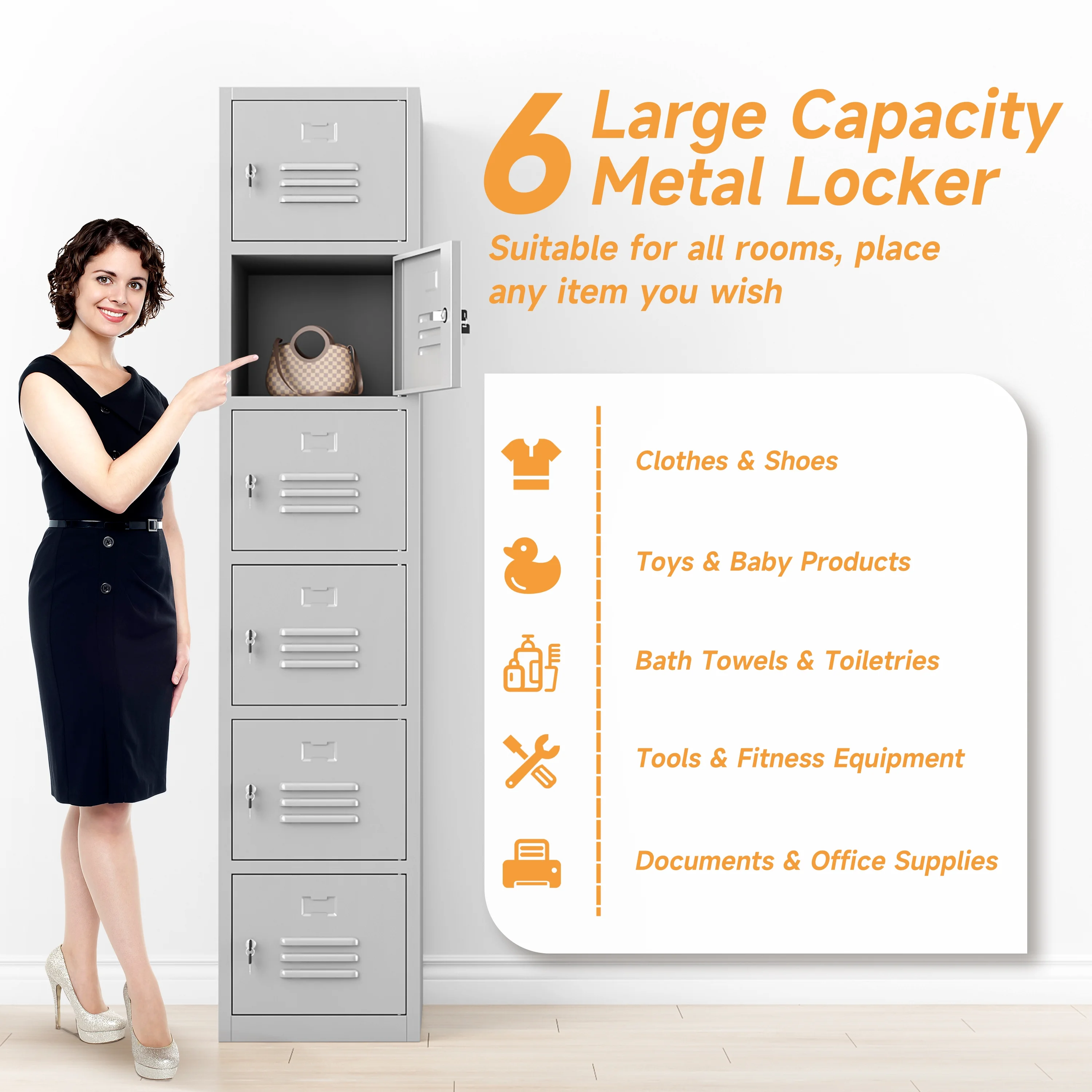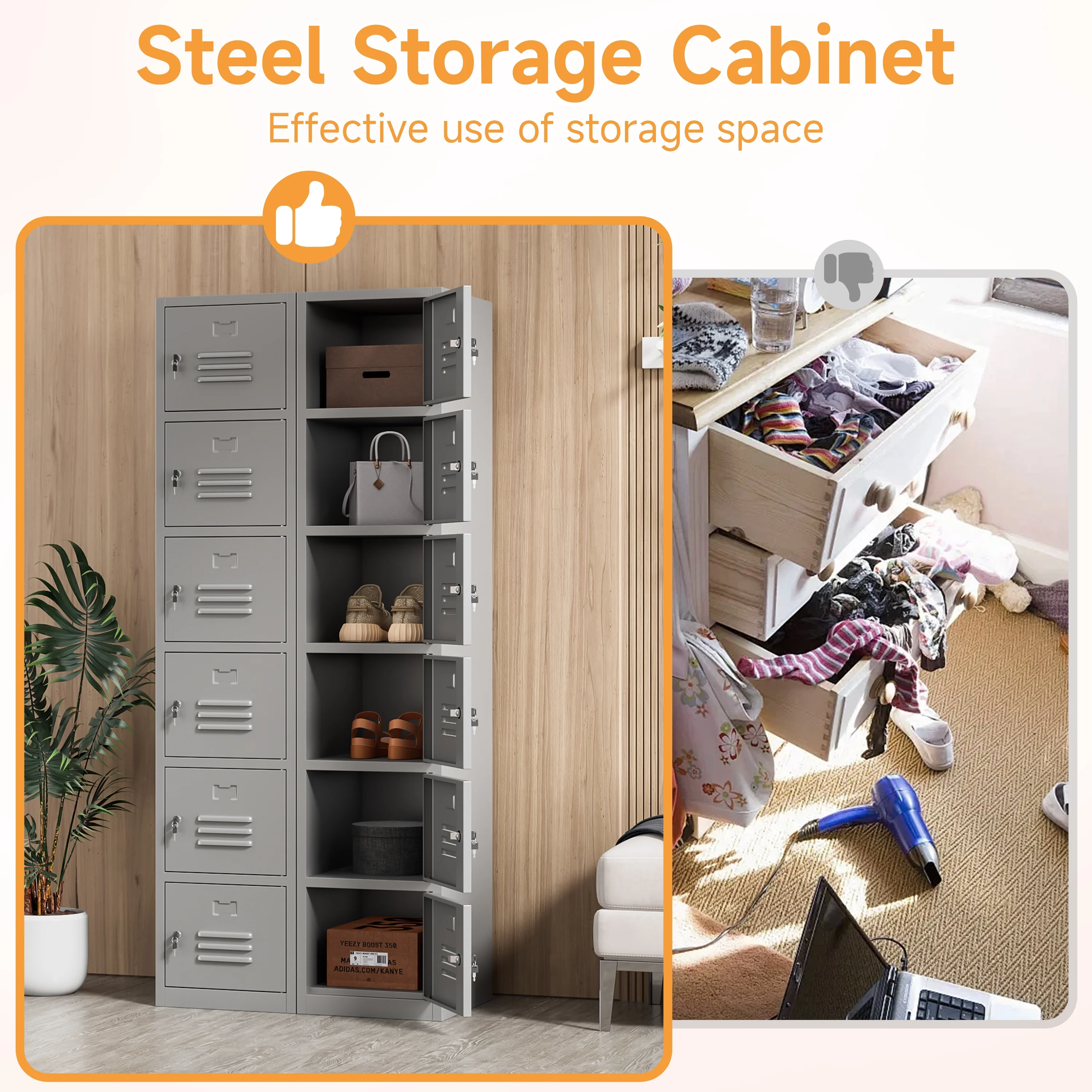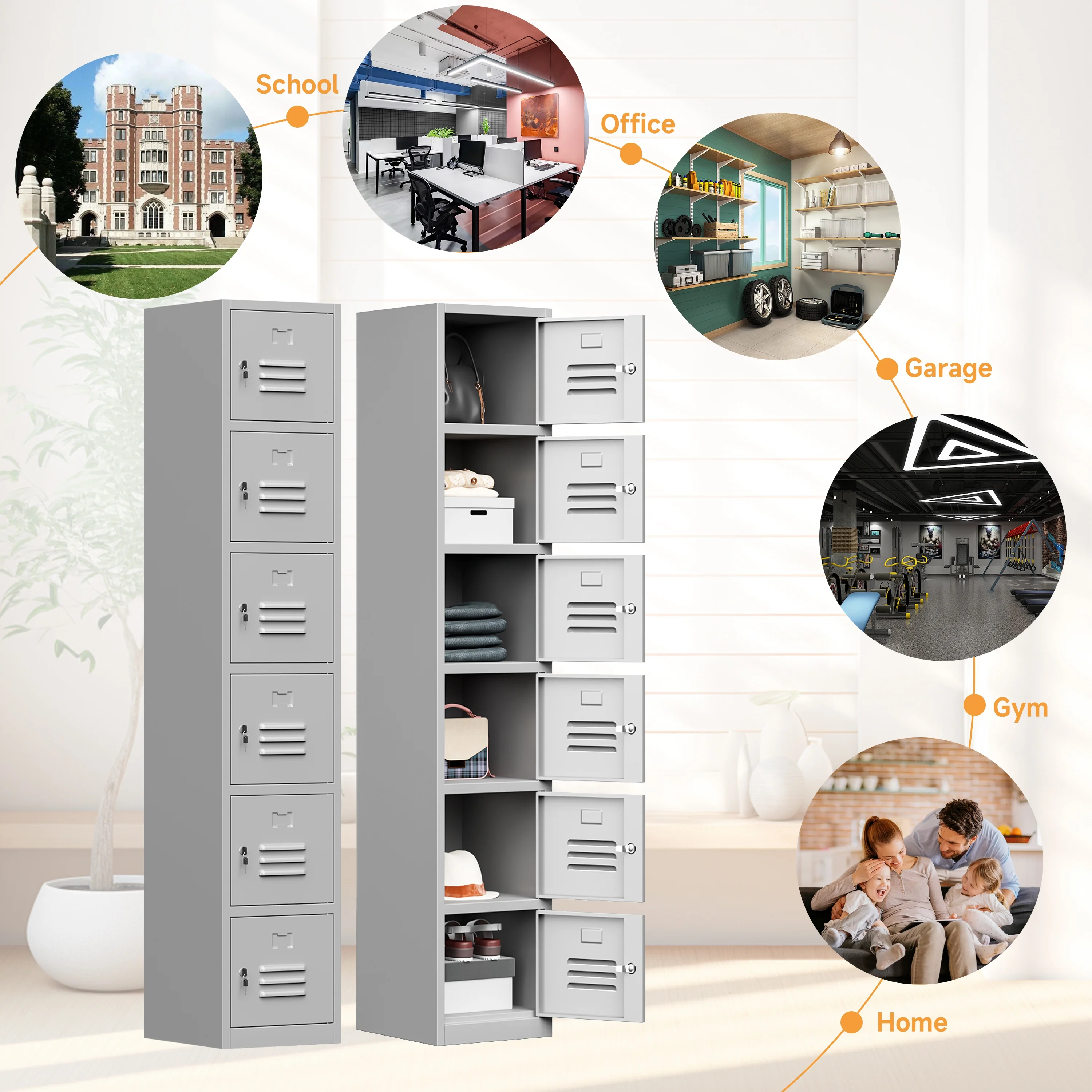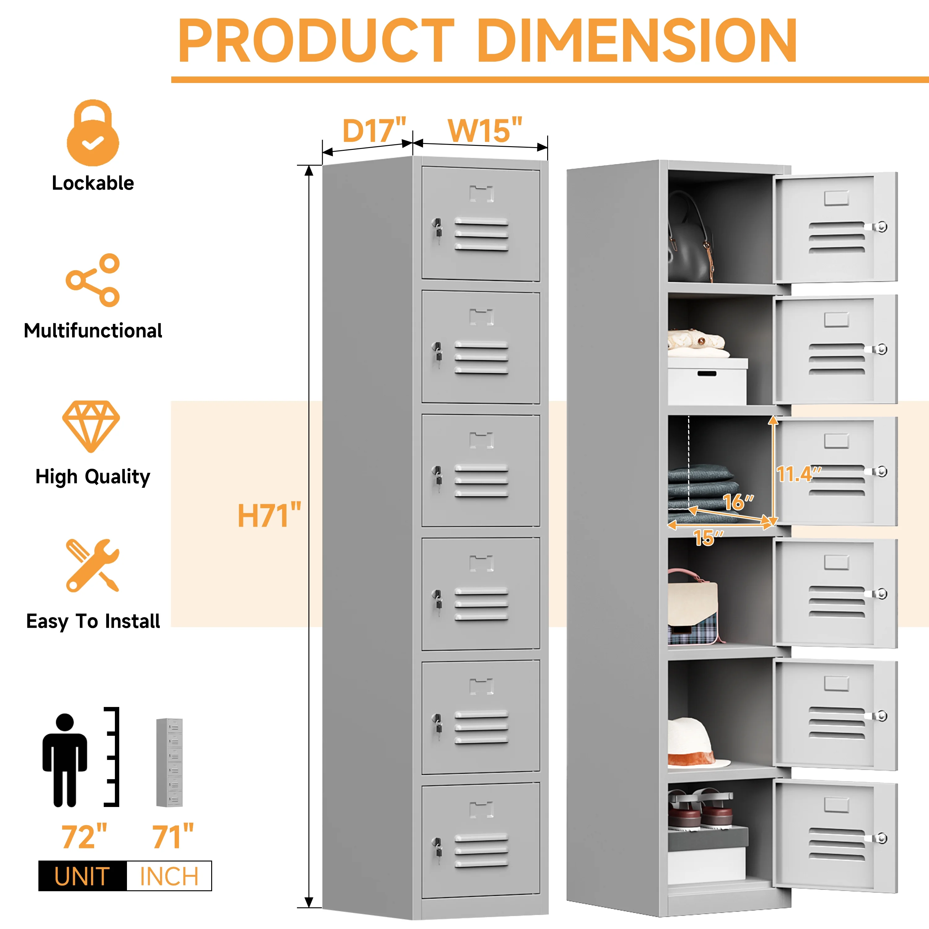 Metal Locker with 6 Doors, 71" Tall Storage Locker for Employees, Lockable Locker Cabinets for School, Gym, Home, Office, Garage, Gray - Curated Treasures Market