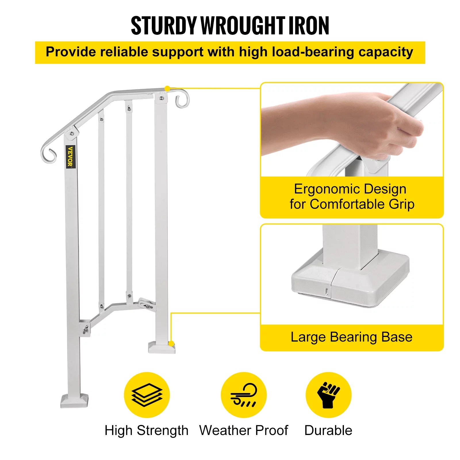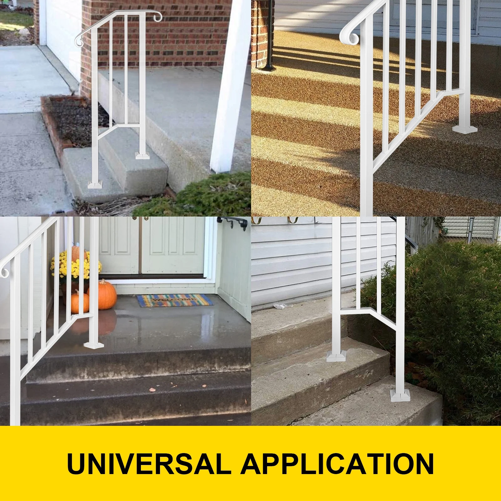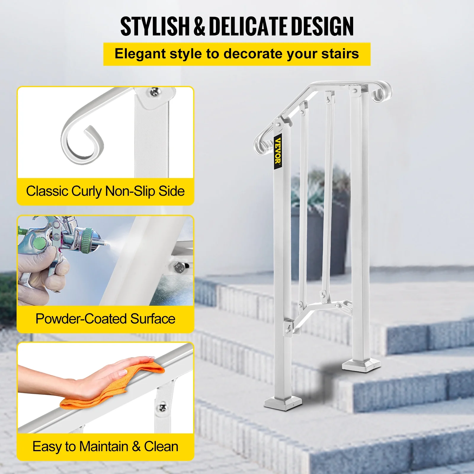 VEVORbrand Handrail for Stairs Outdoor Step Handrail Picket 1 Fits 1 or 2 Steps Rail Height adjustable Wrought Iron Handrail, Matte White - Curated Treasures Market