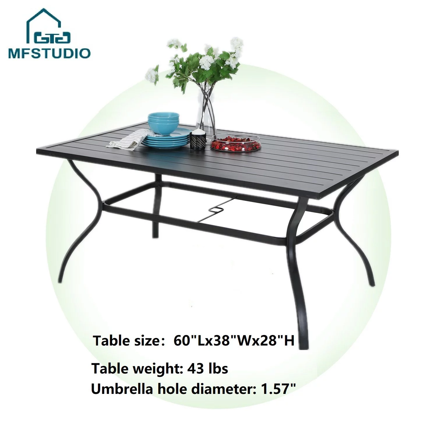 MF Studio 7-Piece Patio Dining Set with Rectangle Table&Textilene Folding Chairs for 6 Persons, Blue - Curated Treasures Market