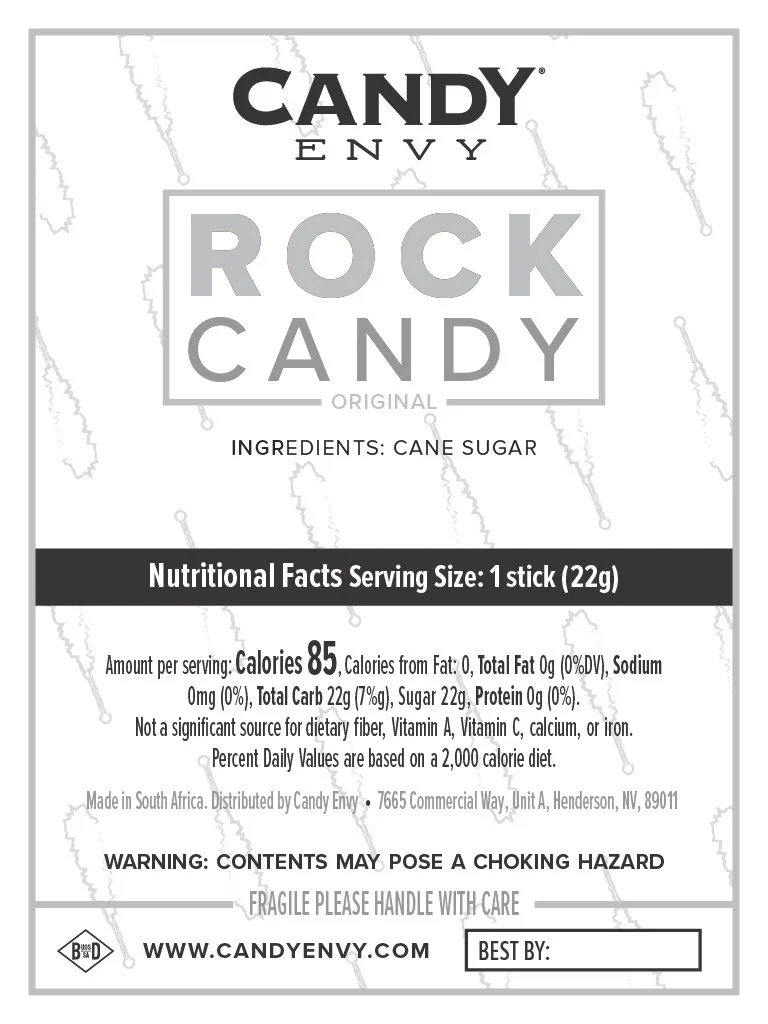 Candy Envy White Rock Candy Sugar Stick, Original Sugar Flavored, 36 Ct. Indiv. Wrapped - Curated Treasures Market