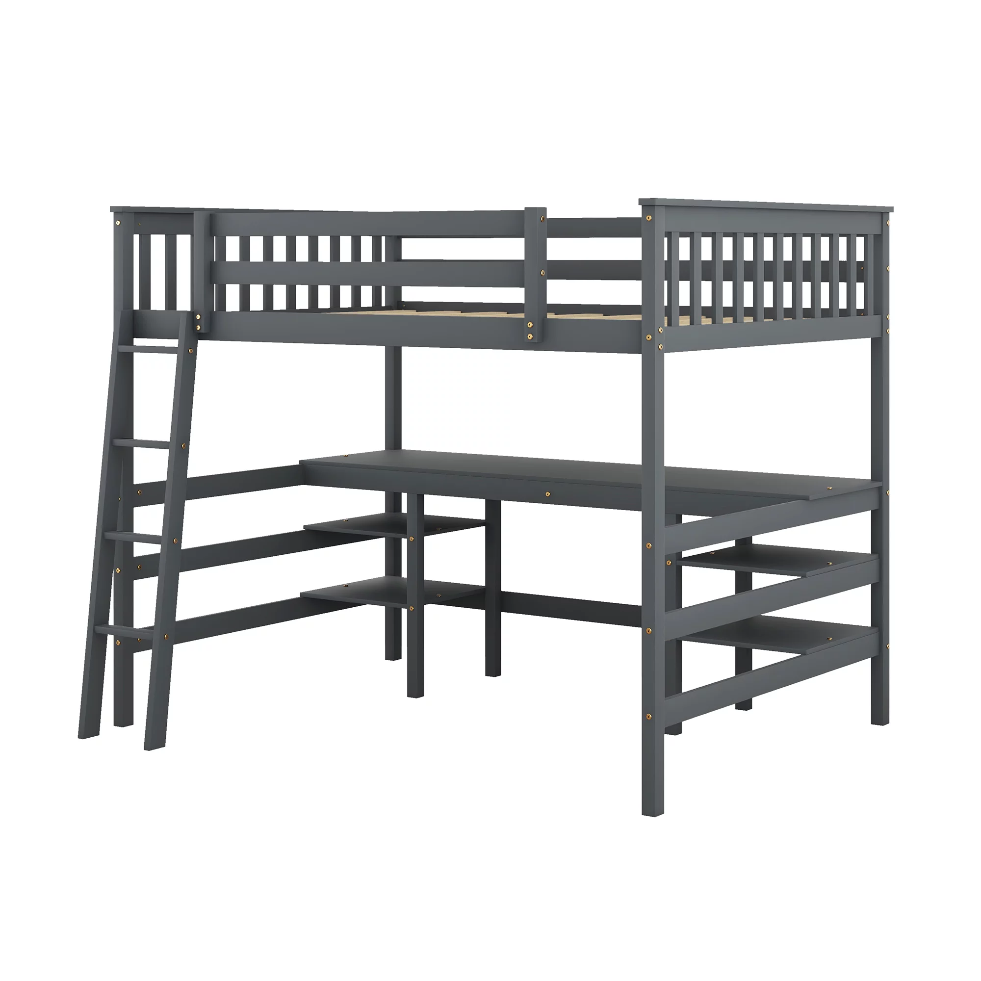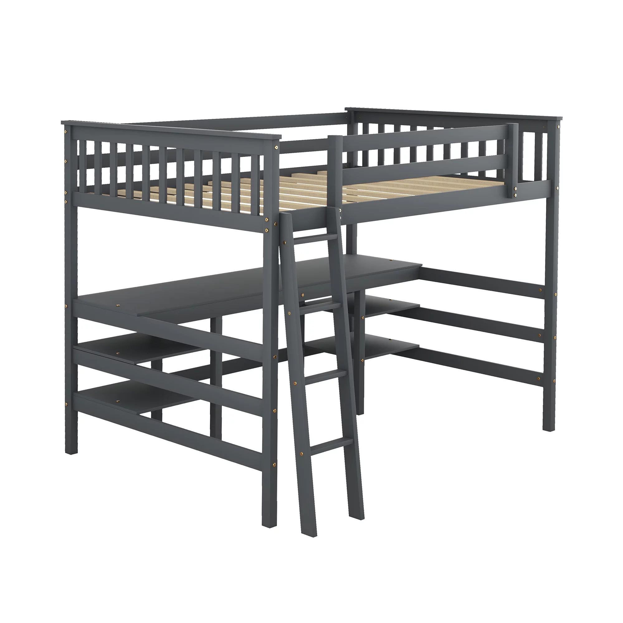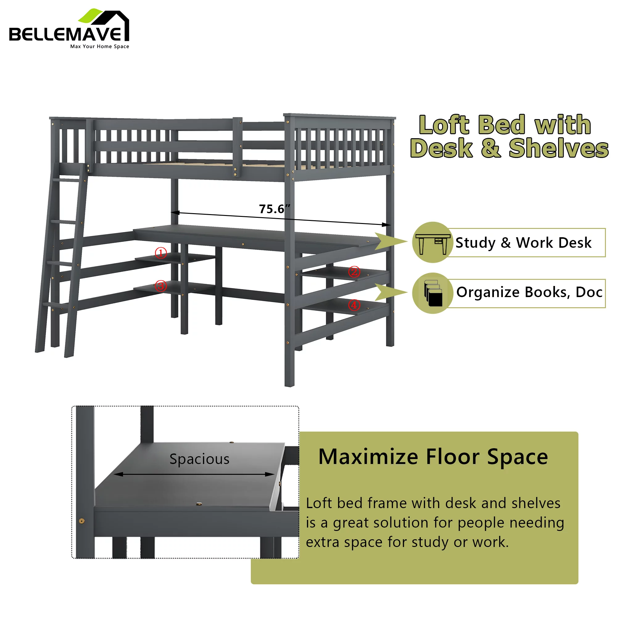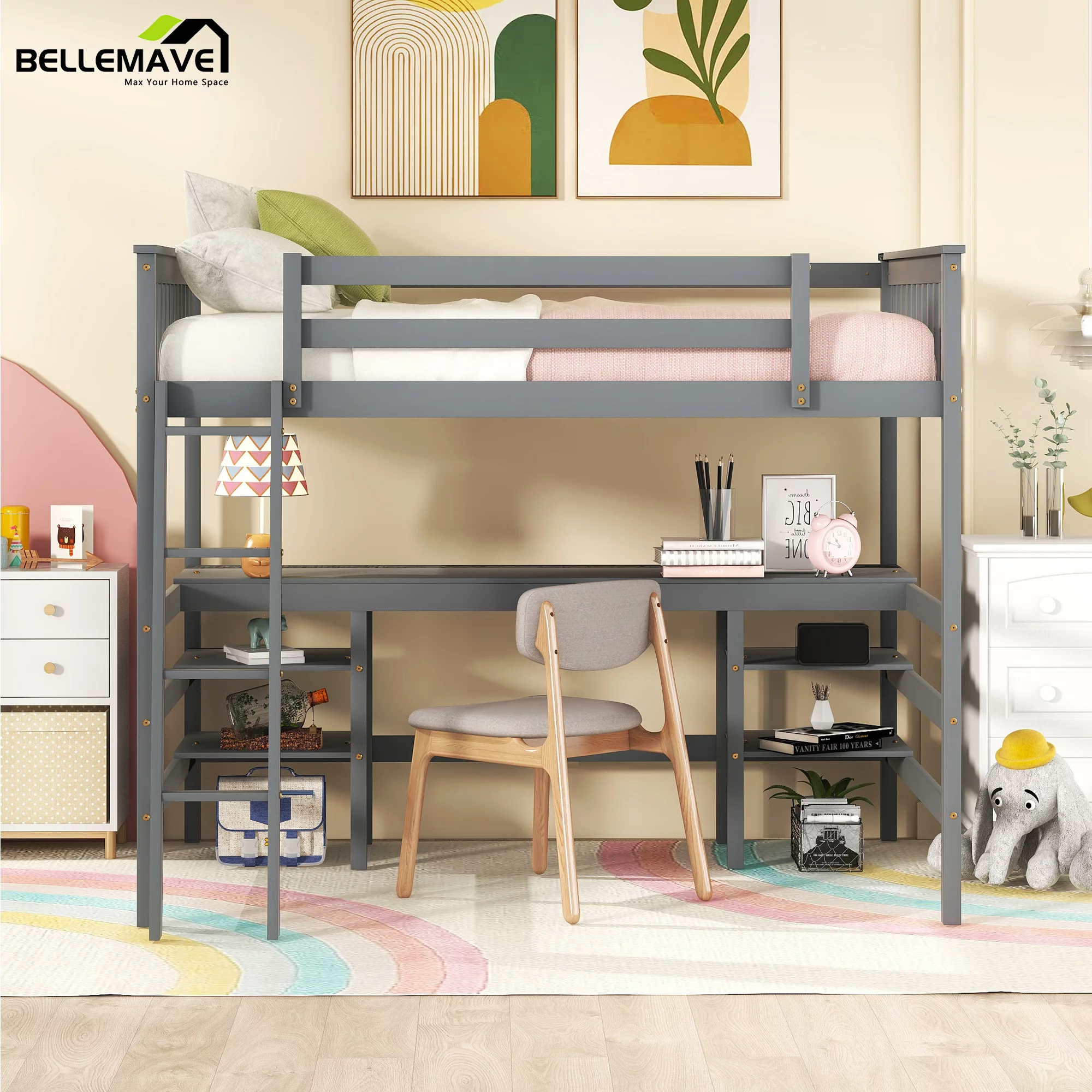 Bellemave Wood Full Size Loft Bed with Desk and Storage Shelves Underneath, High Loft Bed Frame with Ladder for Adults, Teens, Kids (Gray) - Curated Treasures Market