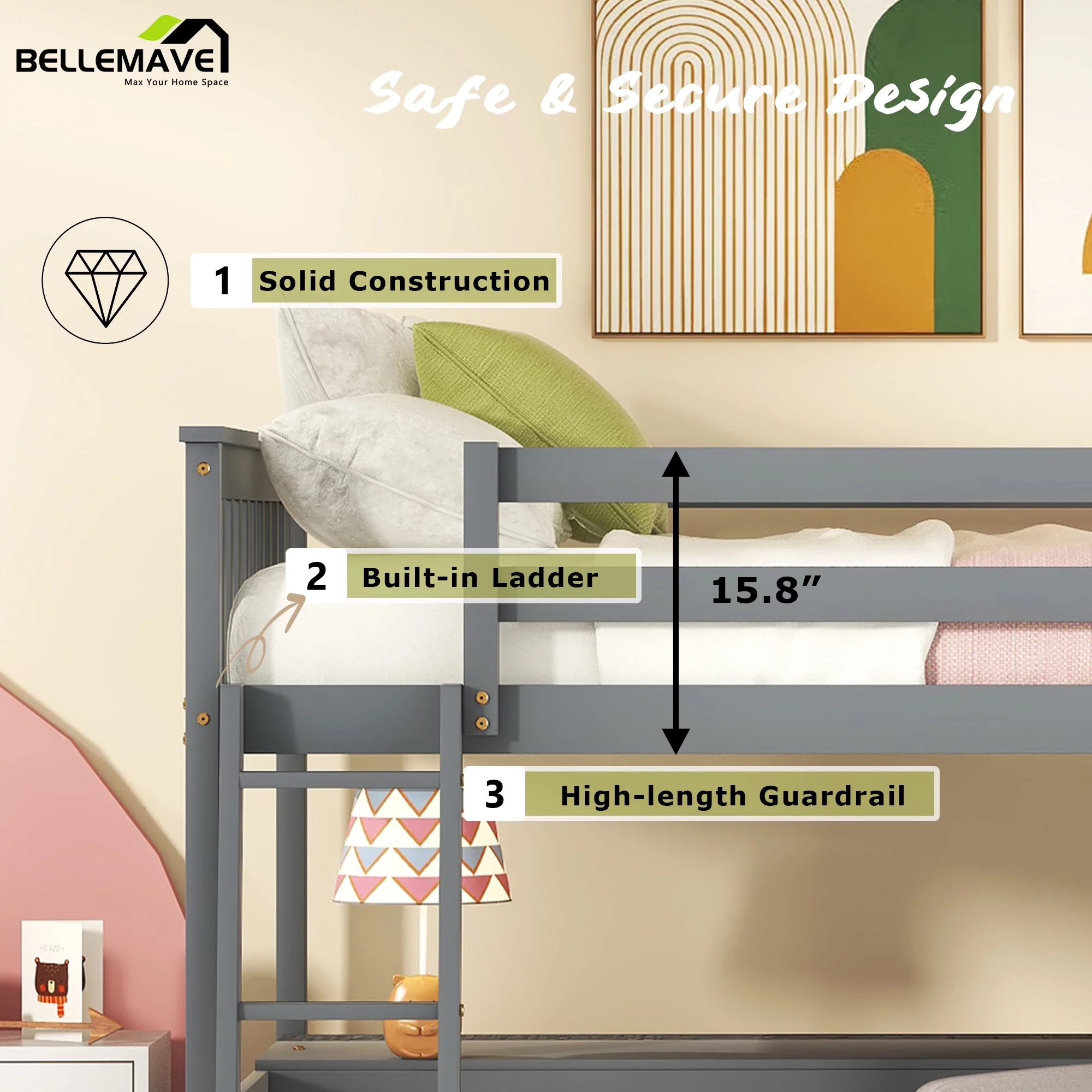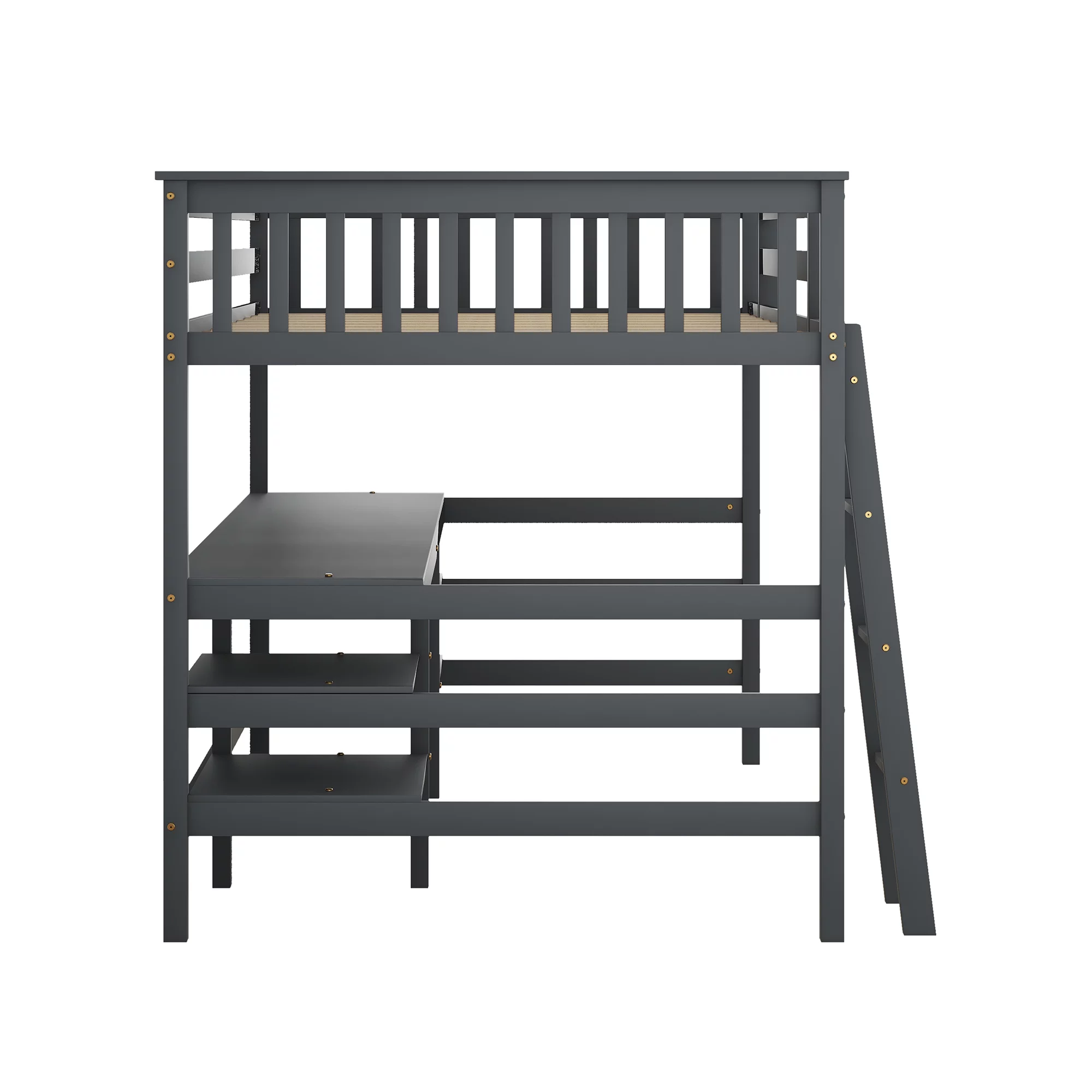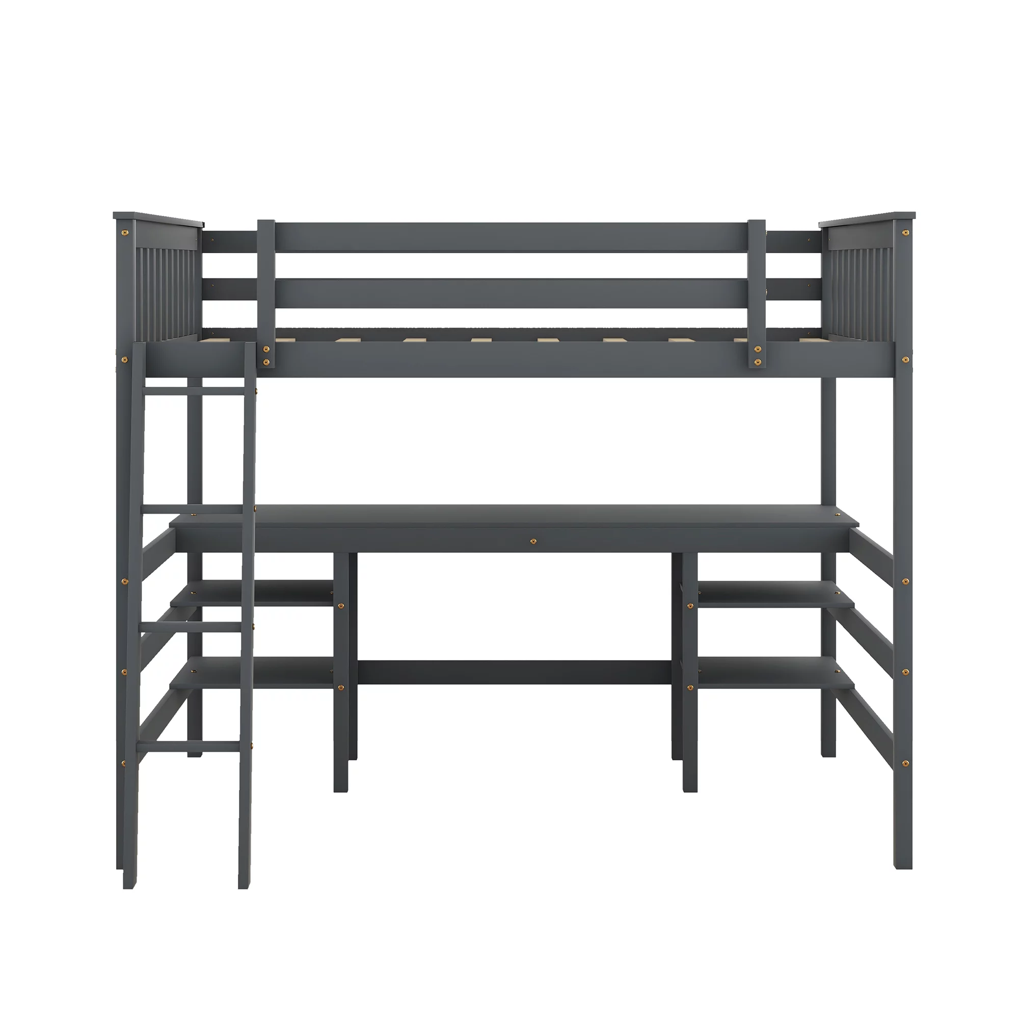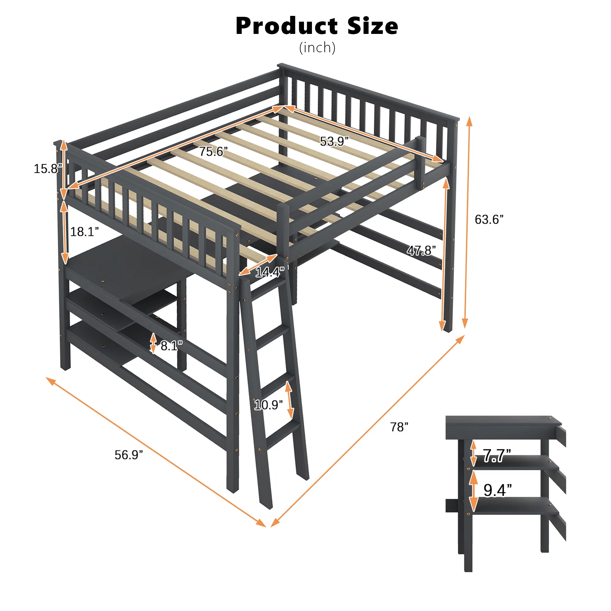 Bellemave Wood Full Size Loft Bed with Desk and Storage Shelves Underneath, High Loft Bed Frame with Ladder for Adults, Teens, Kids (Gray) - Curated Treasures Market