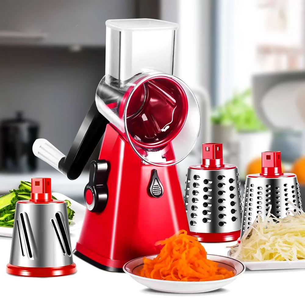 Manual Rotary Cheese Grater Large,Stainless Steel Drum Vegetable Slicer for Kitchen with 3 Interchangeable Food Shredder for Vegatables, Nuts, Chocolate, Easy to Clean - Curated Treasures Market
