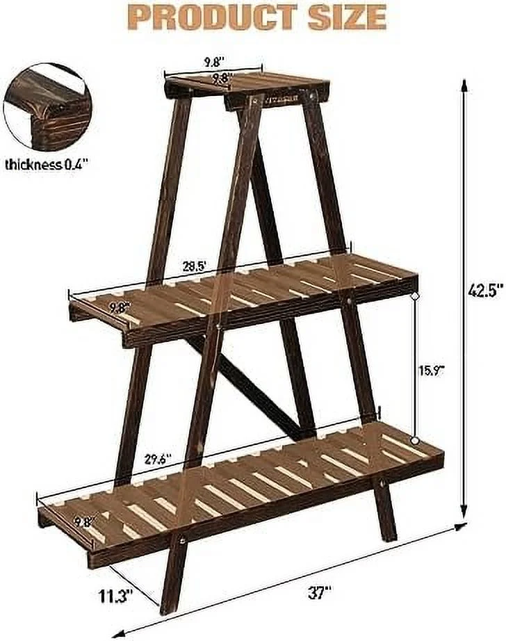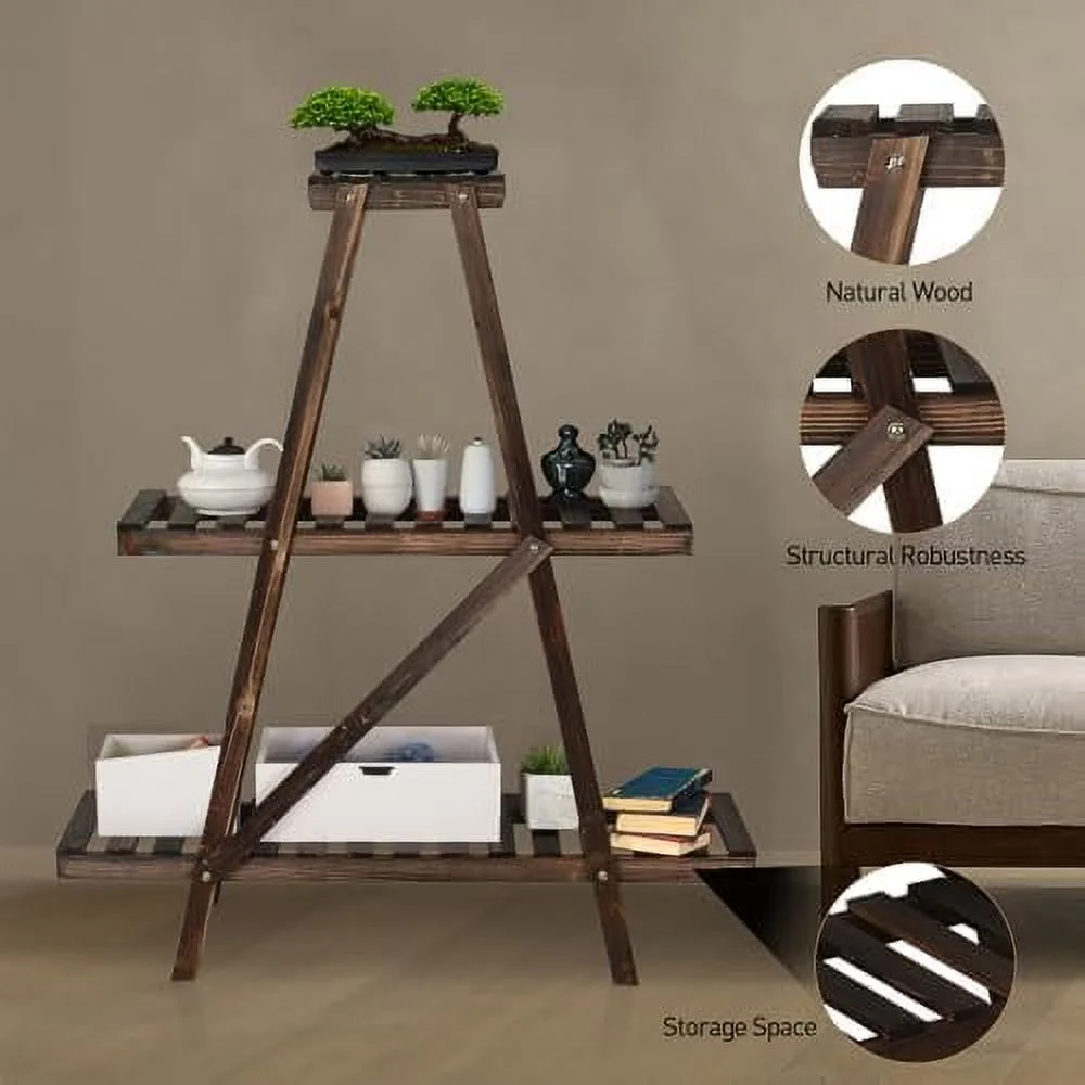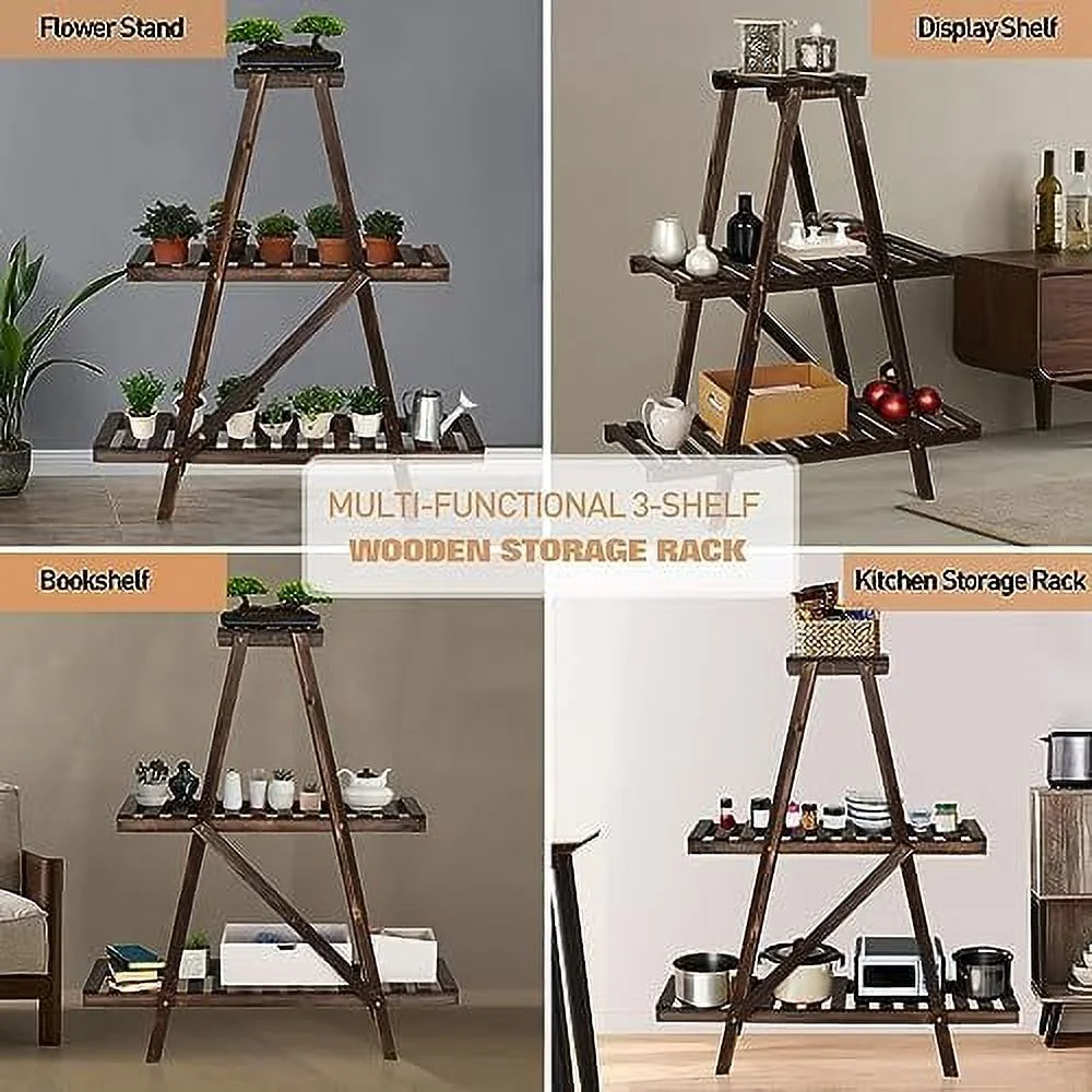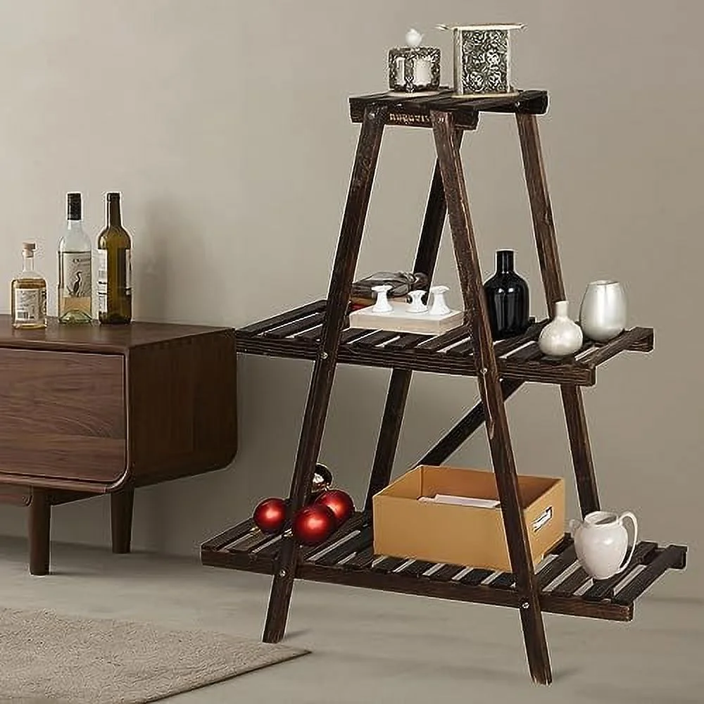 ZFGSUIJN TAG 3 Tier Ladder Wood -Shaped Bookshelves Ladder Bookcase Decorative Leaning Ladder Plant Display Rack Room Home Office Kitchen Bedroom Balcony - Curated Treasures Market