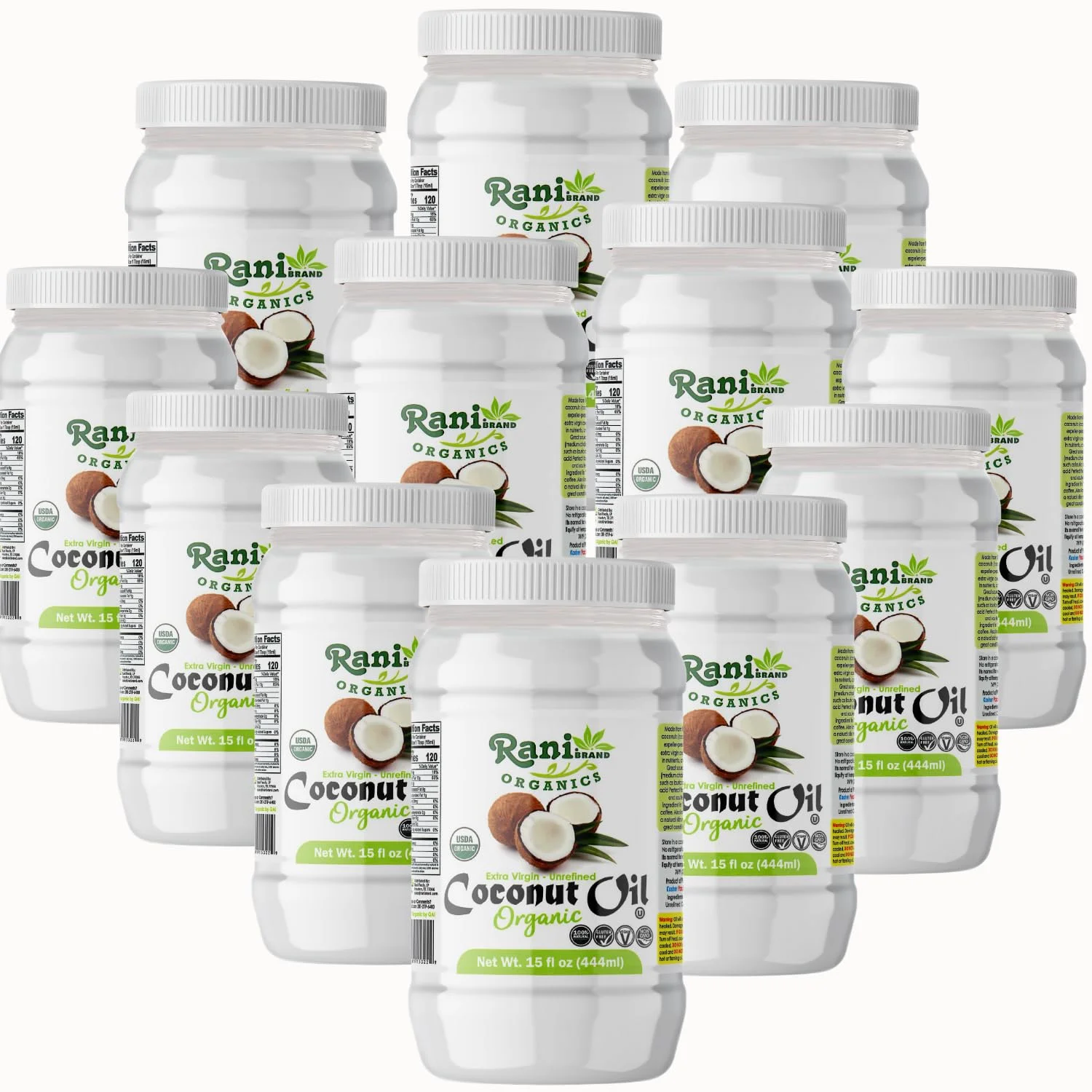 Rani Organic Extra Virgin Coconut Oil, Unrefined 15 fl oz (444ml) Pack of 12, Cold Pressed, NON-GMO | Gluten Free | Kosher | Vegan | 100% Natural | USDA Certified Organic - Curated Treasures Market