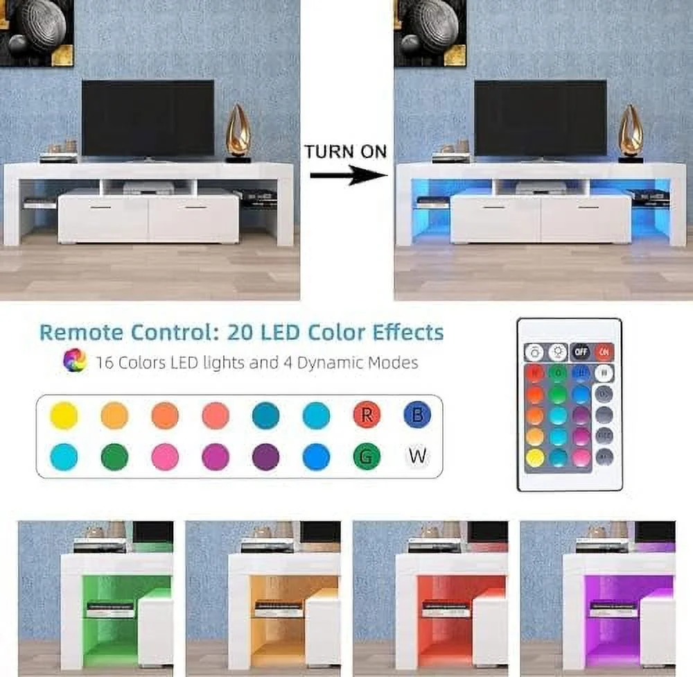 TQJKLFDY TV Stand for 65 inch TVs Entertainment Center with LED Lights 20 Color Effect Living Room Console Table with Cabinet and Open Shelve - Curated Treasures Market