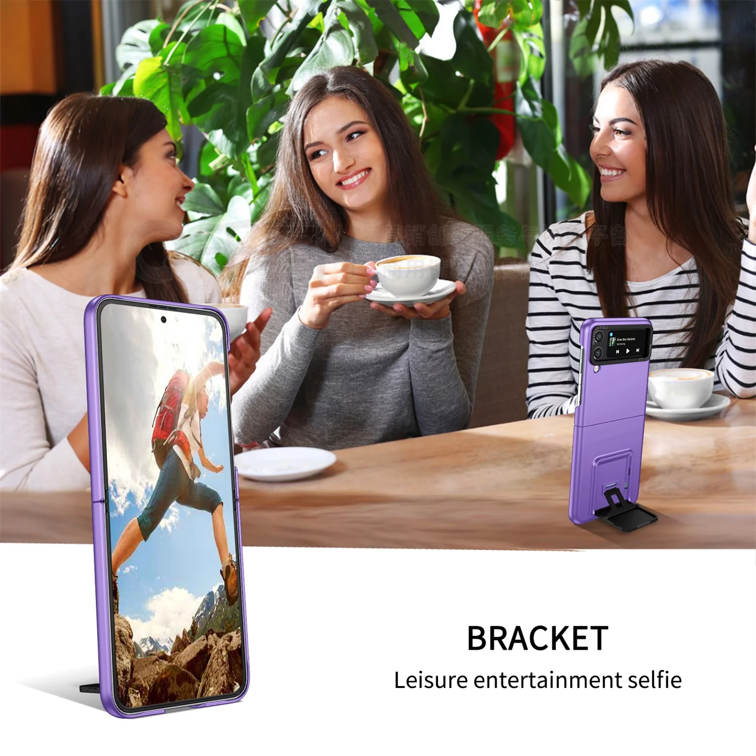 SaniMore for Samsung Galaxy Z Flip 3 6.7 inch Slim Case, Military Grade Shockproof Hard PC Cover Built-in Invisible Folding Bracket Kickstand Thickened Lens Frame for Samsung Z Flip 3, Purple - Curated Treasures Market