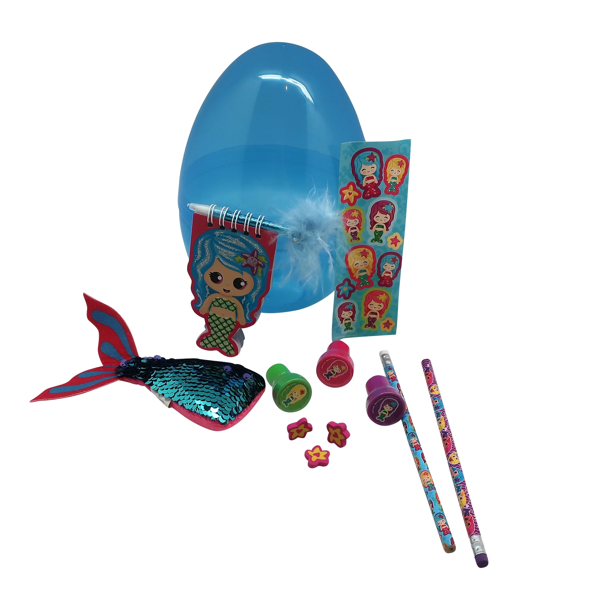 Jumbo 8" Easter Egg Pre-Filled with Mermaid Themed Items, Stampers, Stickers, Pencils, Notebook, Pen, Erasers & Flip Sequin Mermaid Tail, Ideal for Hunts, Baskets and Gifts for Kids and Mermaid Fans - Curated Treasures Market