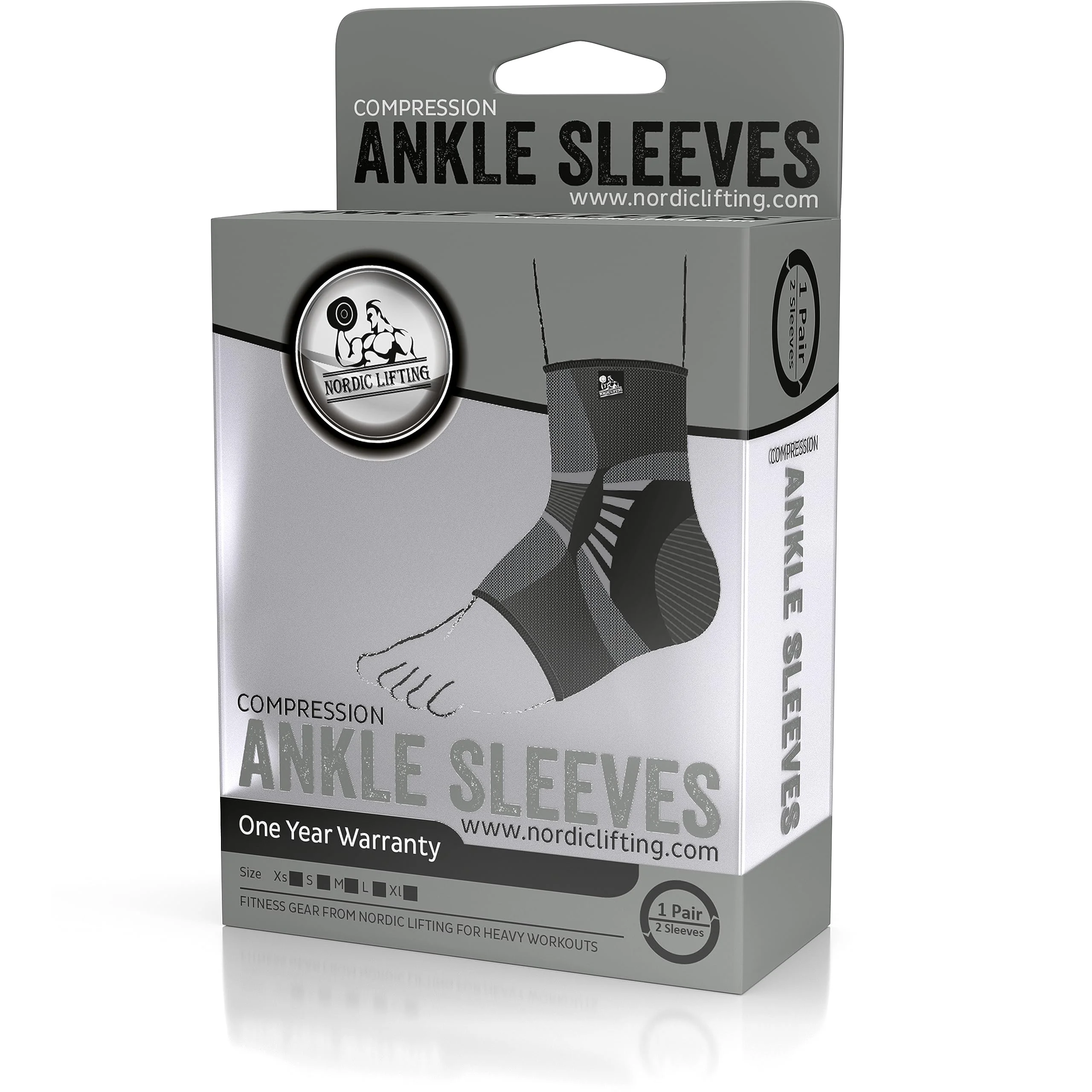Nordic Lifting Ankle Compression Sleeves (1 Pair) - Support for Injury Recovery & Prevention - (Grey, Medium) - Curated Treasures Market